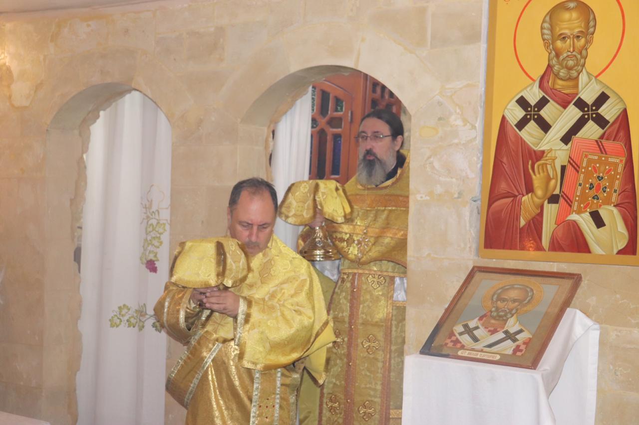 В субботу, 19 декабря, в день памяти святителя Николая Чудотворца Божественную литургию в храме в честь свт. Николая г. Сайда совершил архимандрит Филипп в сослужении дьякона Максима Сабах.