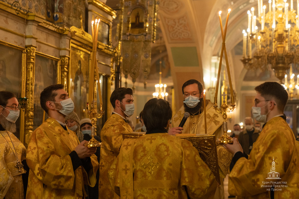 Вечером 20 февраля 2021 года в храме Рождества Иоанна Предтечи на Пресне митрополит Корсунский и Западноевропейский Антоний совершил Всенощное бдение в канун первой подготовительной ко Святой Четыредесятнице недели - Недели о мытаре и фарисее.