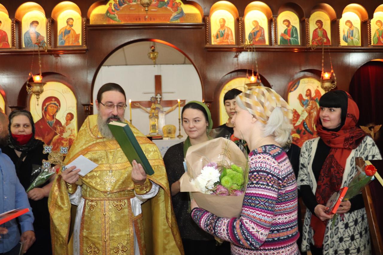 Настоятель поздравил прихожан Подворья, отмечавших в течение предыдущего месяца дни Ангела и рождения, со знаменательными датами и вручил им памятные подарки.