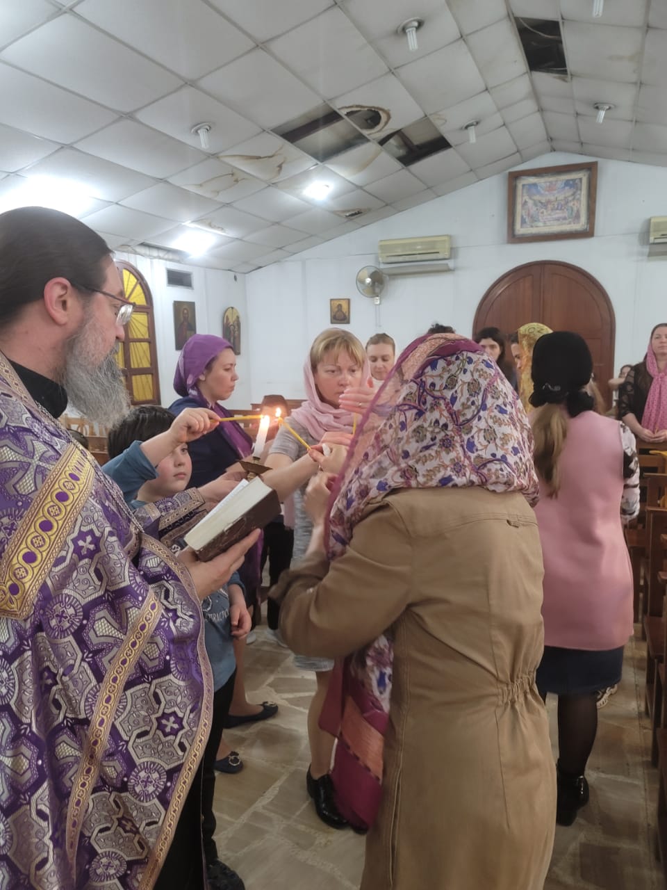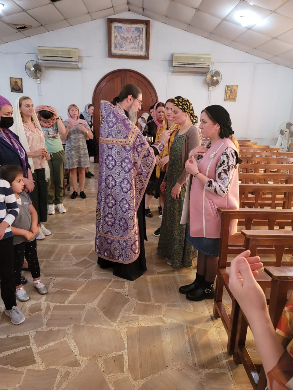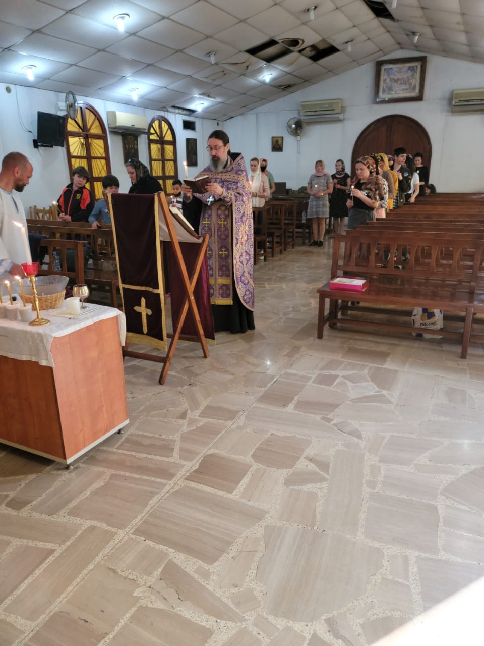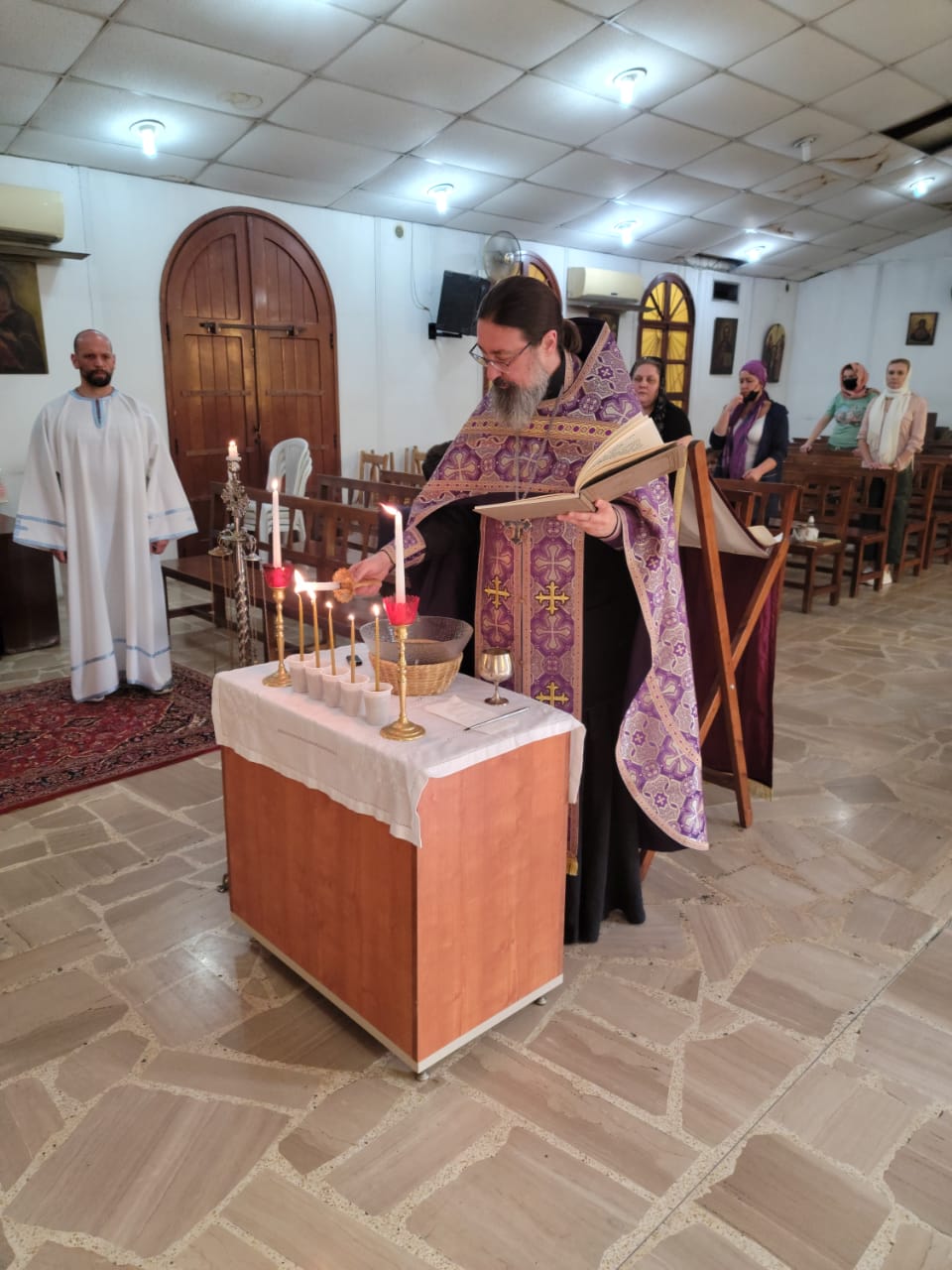 В Великую Среду, 28 апреля, в храме Благовещения Пресвятой Богородицы в Жаль Эль Диб было совершено Таинство Елеосвящения (Маслособорования). Богослужение совершил архимандрит Филипп.