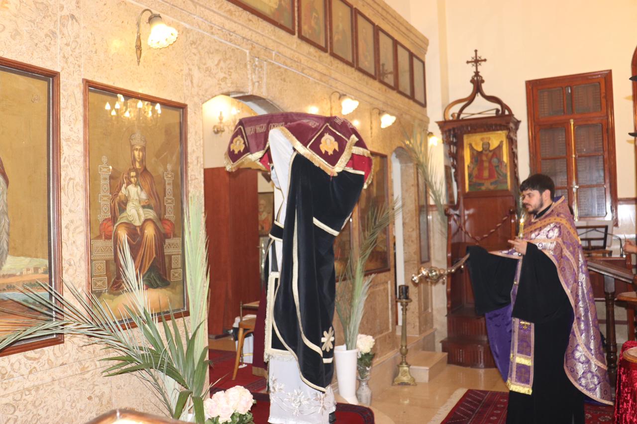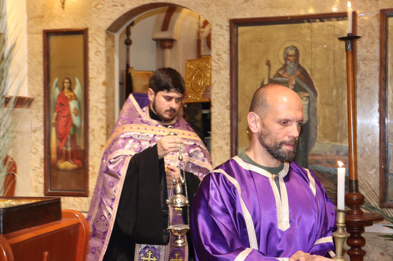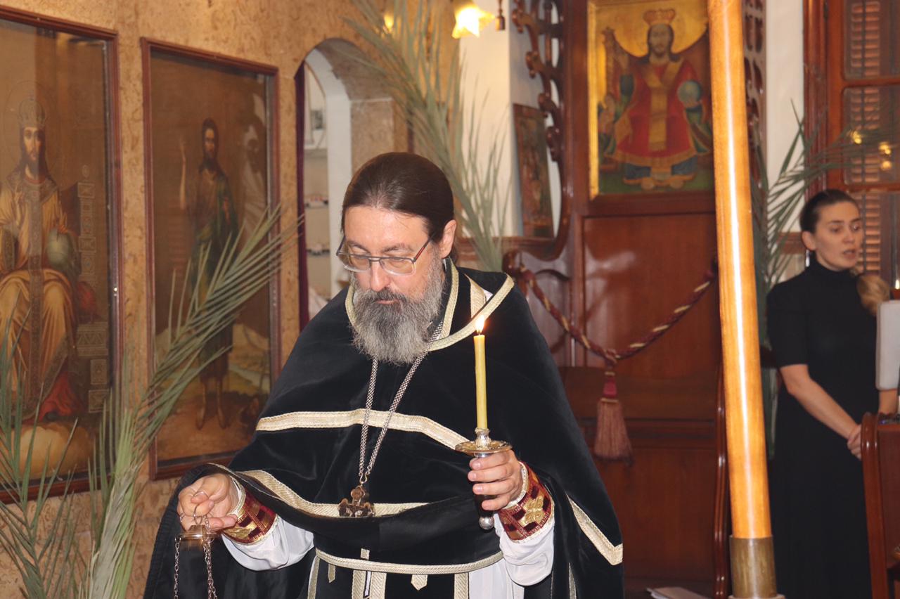В Великую Пятницу, 30 апреля, Вечерню с выносом Плащаницы Спасителя в храме св. Иоанна Предтечи совершил архимандрит Филипп в сослужении клирика Киевской митрополии Украинской Православной Церкви иерея Сергия Шульгача.
