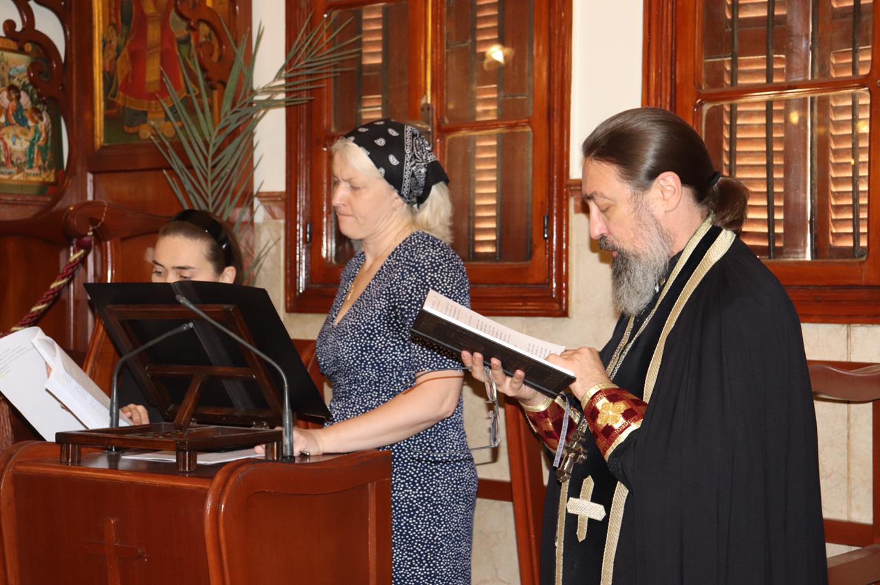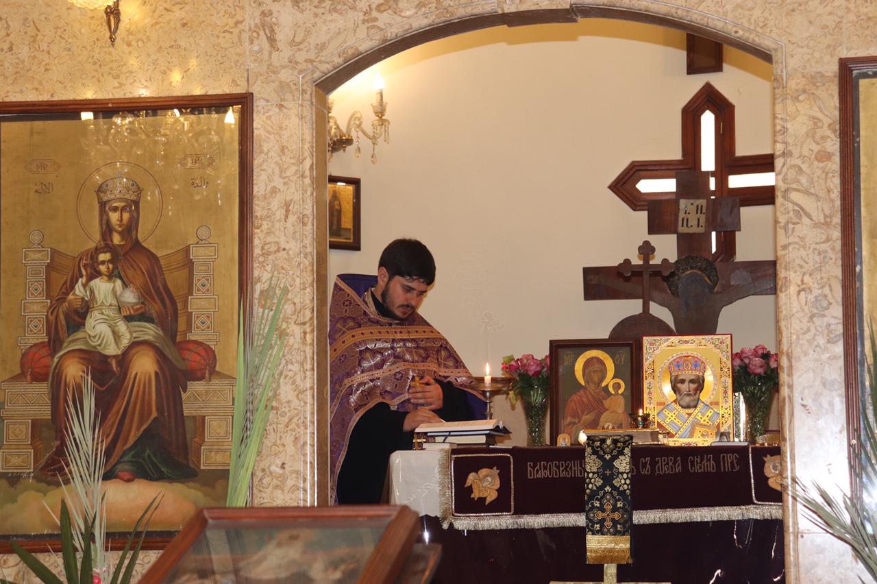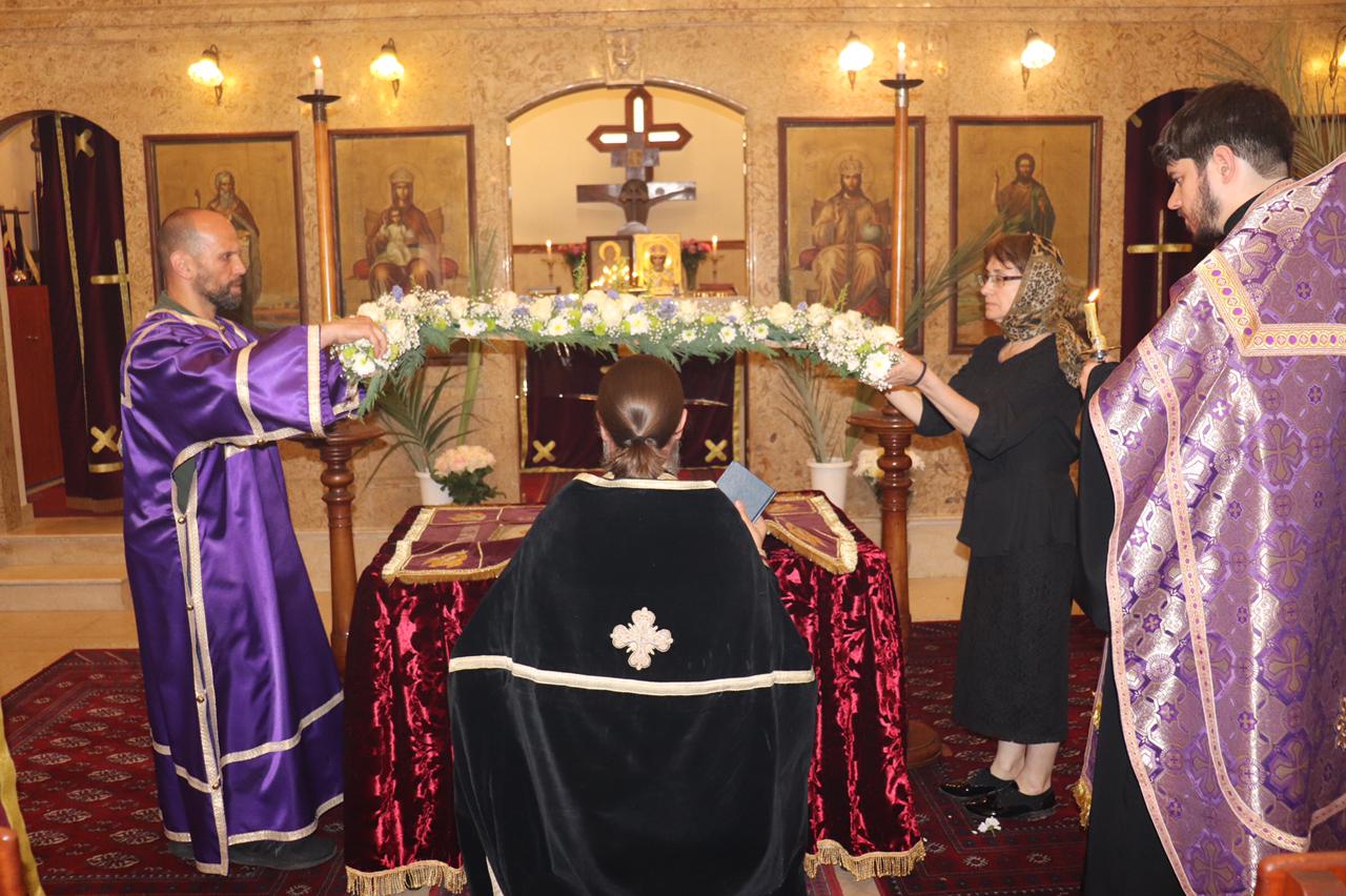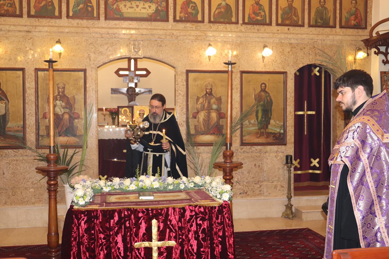 В Великую Пятницу, 30 апреля, Вечерню с выносом Плащаницы Спасителя в храме св. Иоанна Предтечи совершил архимандрит Филипп в сослужении клирика Киевской митрополии Украинской Православной Церкви иерея Сергия Шульгача.