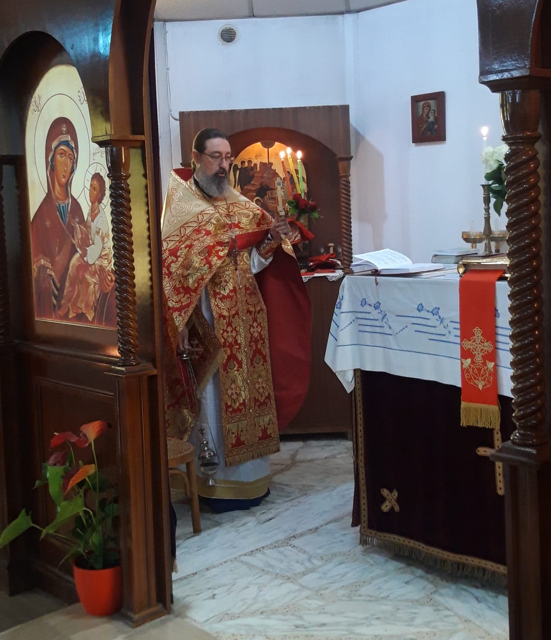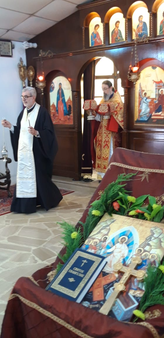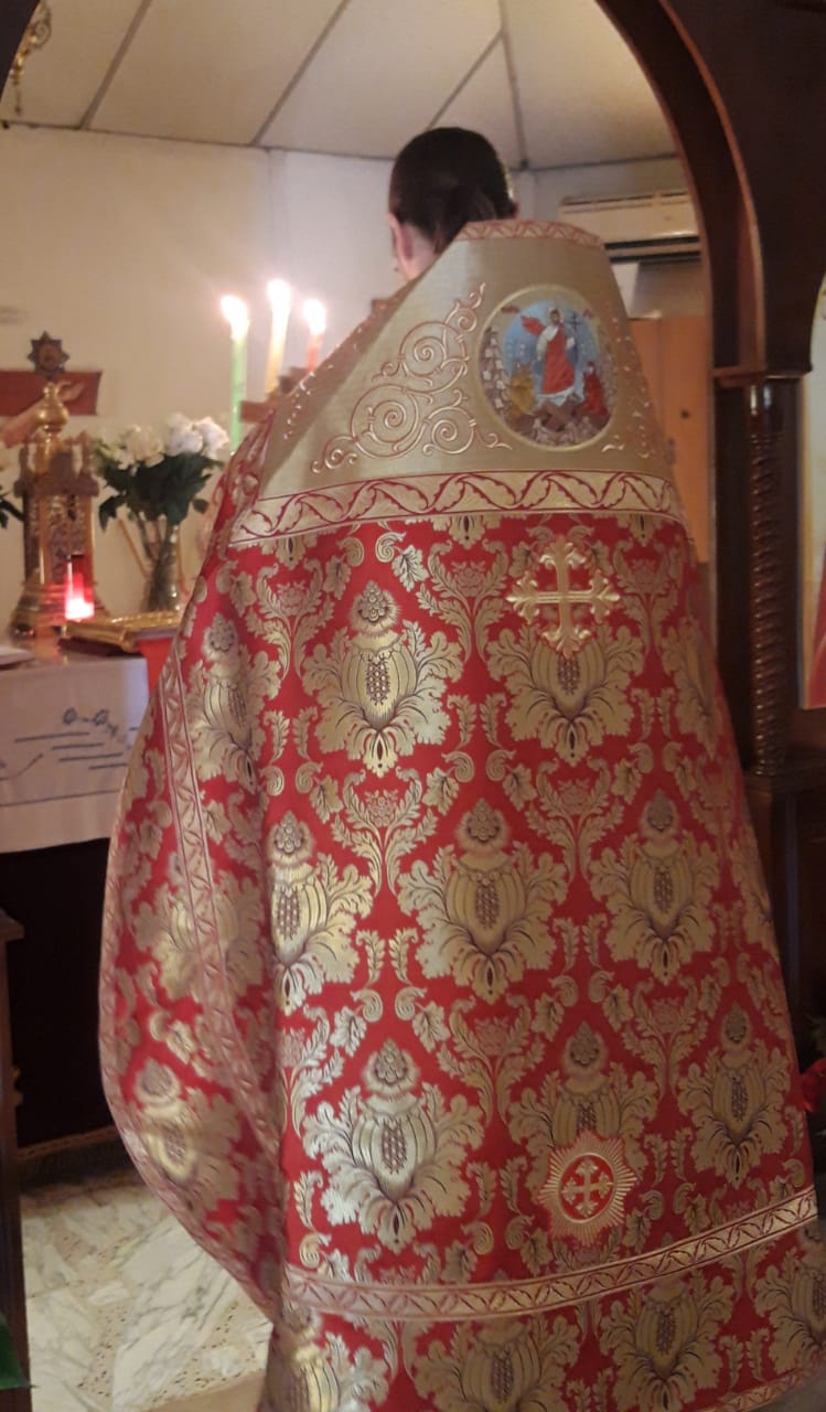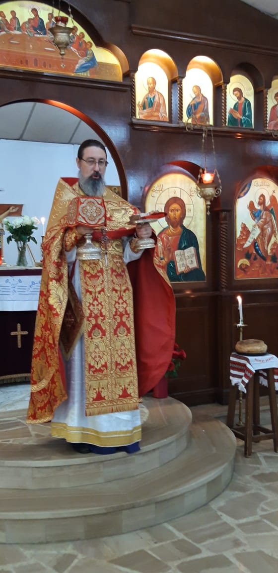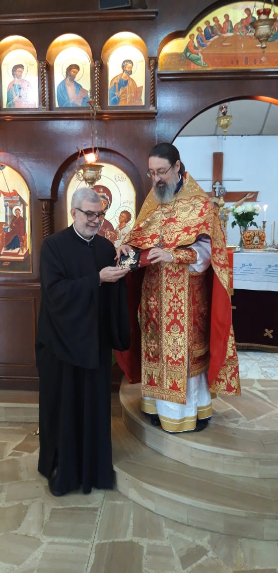 После отпуста Божественной литургии архимандрит Филипп тепло приветствовал протоиерея Самира, поздравил его с праздником Светлого Христова Воскресения и вручил памятные подарки.