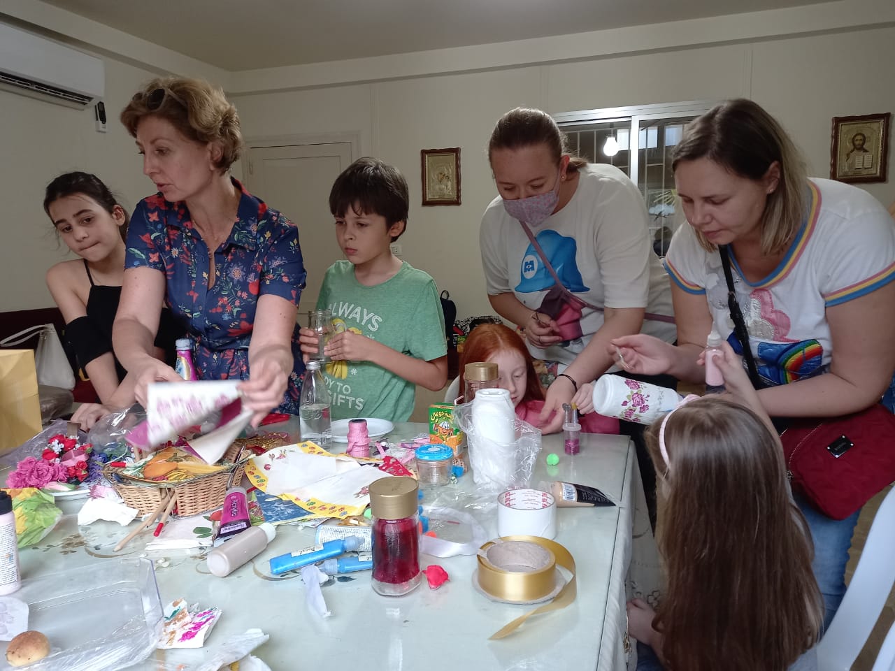 В тот же день в приходском доме при храме Благовещения Пресвятой Богородицы состоялась репетиция Пасхального спектакля, готовящегося силами учеников Воскресной школы „Исток“ при Подворье Русской Православной Церкви.