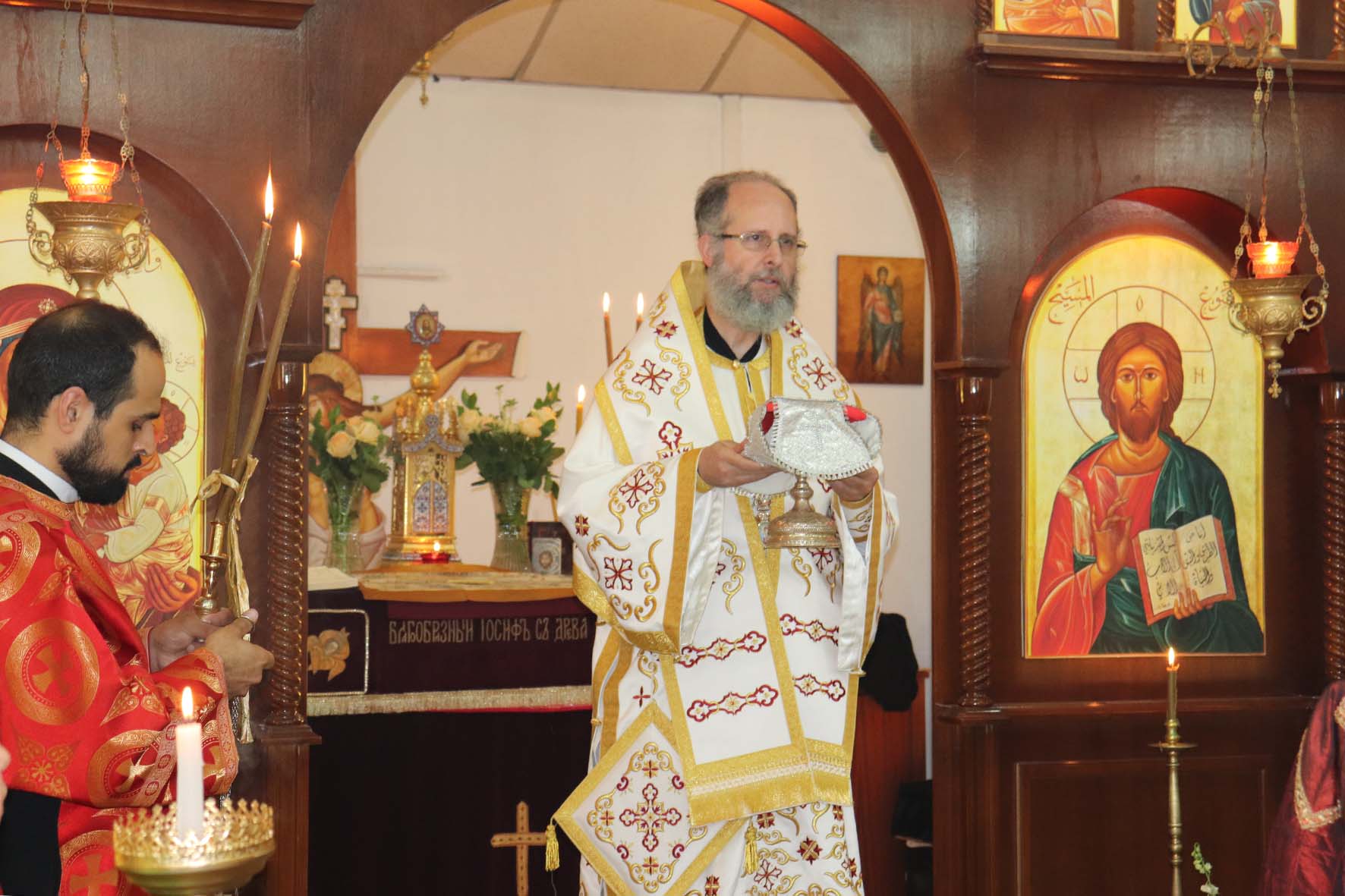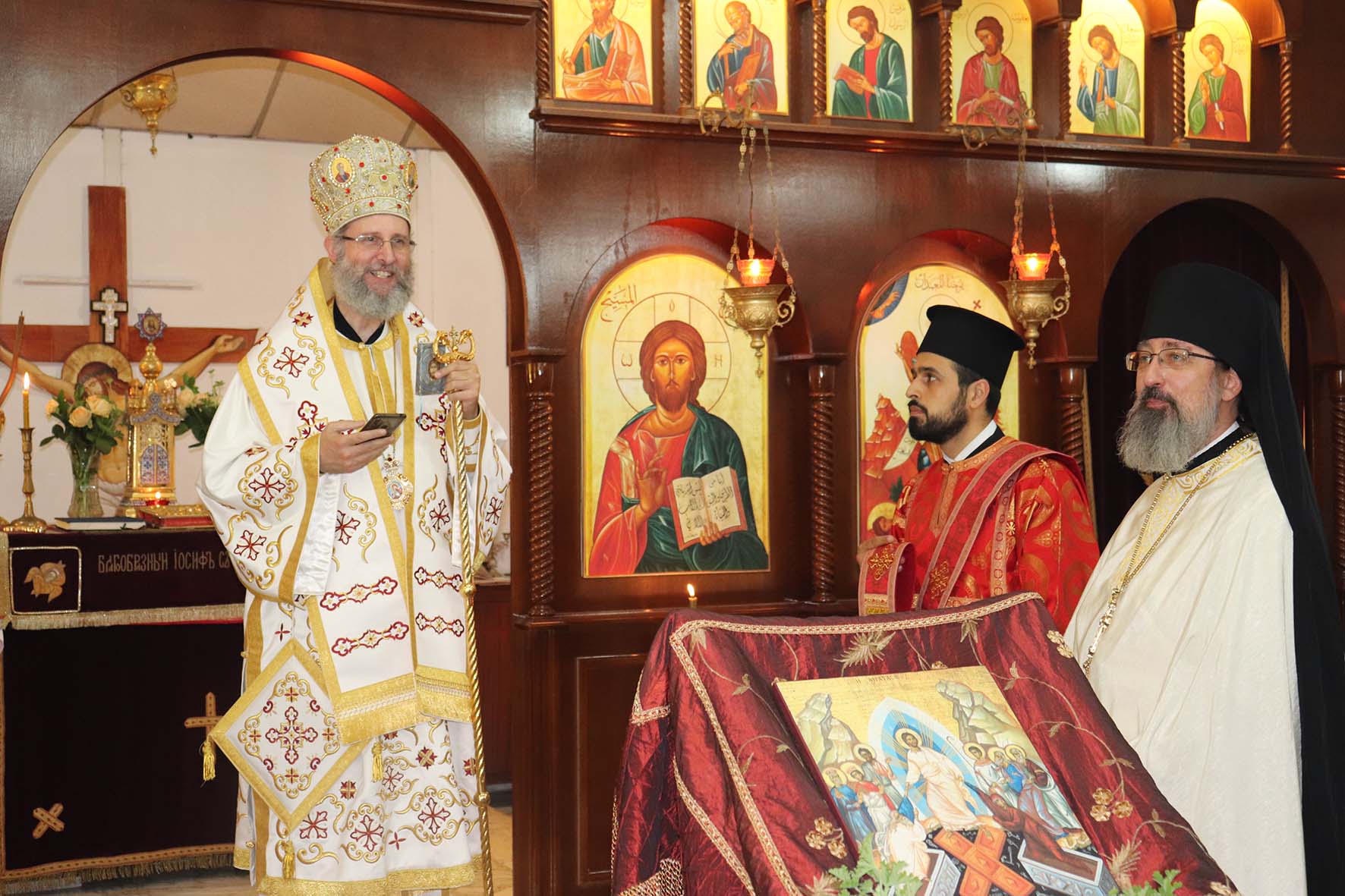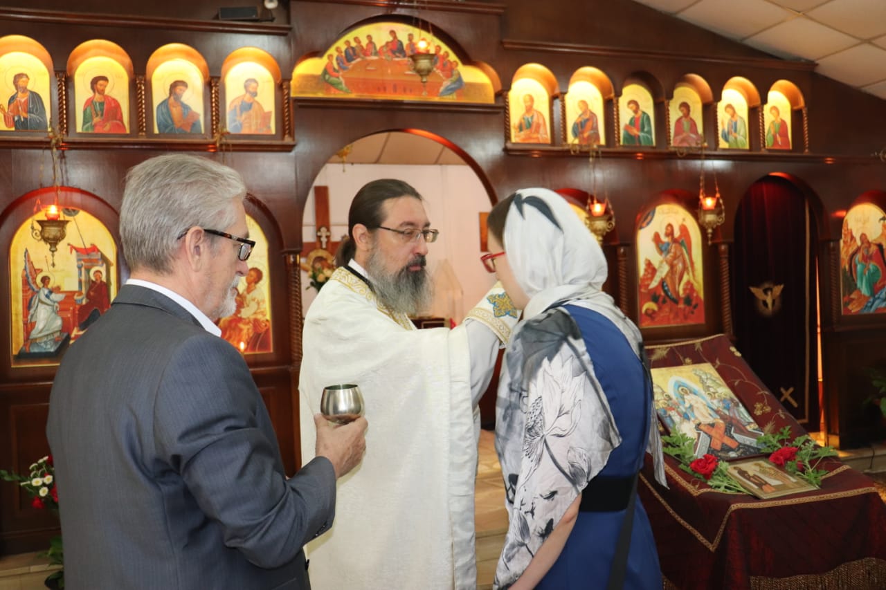 За Божественной литургией молился и причащался Святых Христовых Таин, митрополит Филиппопольский Нифон, Представитель Антиохийской Православной Церкви при Святейшем Патриархе Московском и всея Руси и Чрезвычайный и Полномочный Посол Российской Федерации в Ливане А.Н.Рудаков.