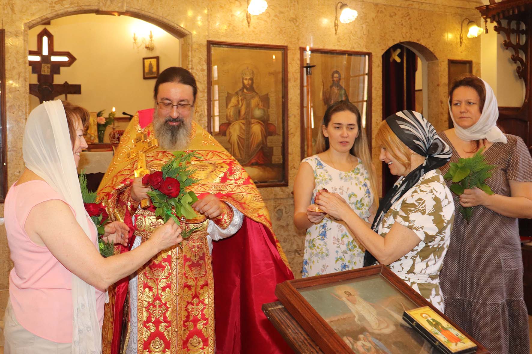 Настоятель поздравил с Днём Тезоименитства и памятными датами сотрудников и постоянных прихожан Подворья Ксению Башалани, Ксению Постригань, Ксению Шеаб, Наталию Саркиз и вручил им памятные подарки.