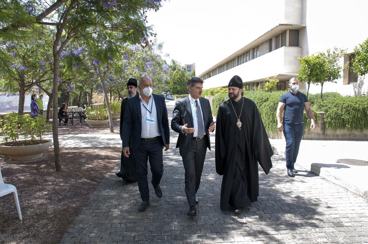 Затем, по предложению Блаженнейшего Патриарха, архиепископ Леонид посетил ректорат университета, где ректор д-р Элиас Варрак рассказал высокому гостю об учебном процессе, представил презентацию и рассказал о современных трудностях в жизни университета.