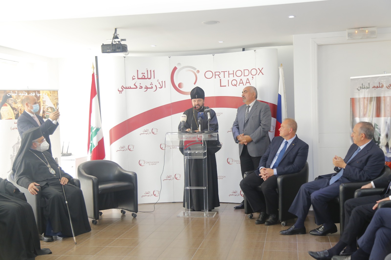 «Ваше Высокопреосвященство, господин посол, мне очень радостно сегодня быть здесь, в штаб-квартире «Orthodox Liqaa», основной, и, я бы сказал, организованной православной общине Ливана. Я ехал сюда по поручению и по благословению Святейшего Патриарха Московского и всея Руси Кирилла. Визит мой очень краткий, двухдневный, но я считаю что он очень состоялся в плане работоспособности и с той базы вопросов, которые мне удалось здесь поднять и решить. И глубоко символично, что перед своим отлётом на Родину мы ставим такую точку, квинтэссенцию нашей встречи в вашем прекрасной штаб-квартире «Orthodox Liqaa». Политическую оценку тех или иных событий, я думаю, нам огласит господин Посол. Я же хотел со своей стороны сказать, что наши Церкви, и Русская Православная Церковь, и Антиохийская Православная Церковь, прежде всего делают всё для того, чтобы людям во всем мире, и в наших прежде всего странах, жилось легче.