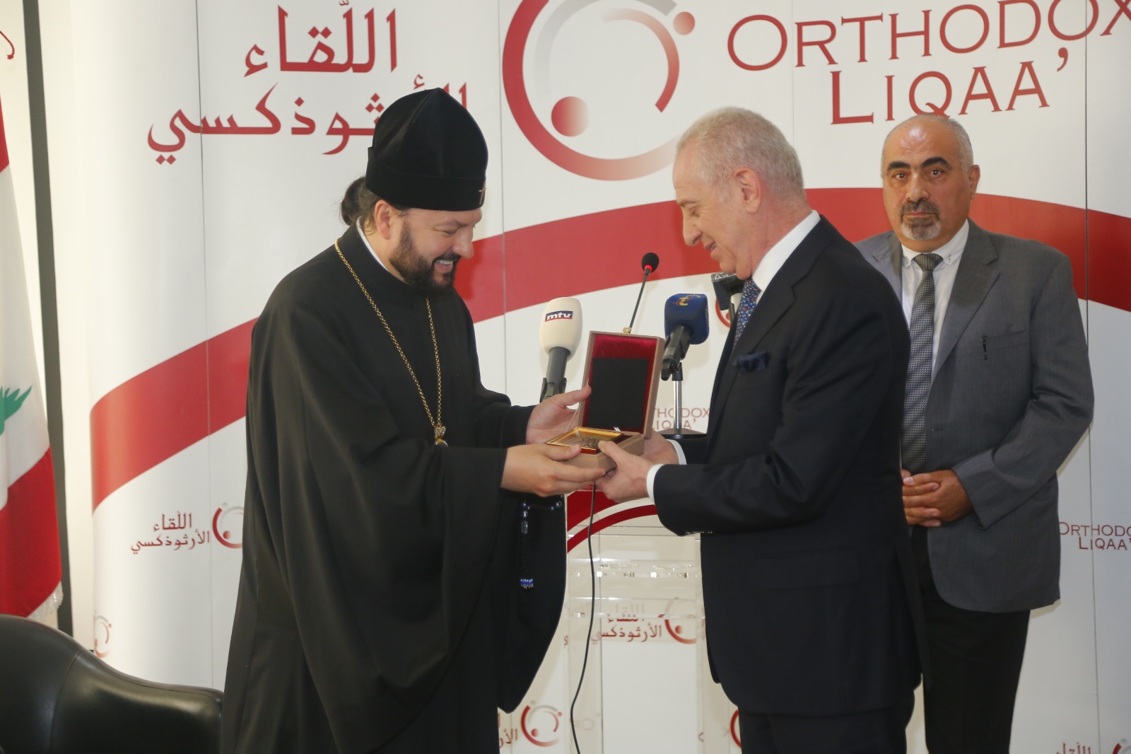 Генеральный секретарь «Ликаа ортодокси» Марван Абу Фадель вручил архиепископу Леониду памятный знак «Православного собора».