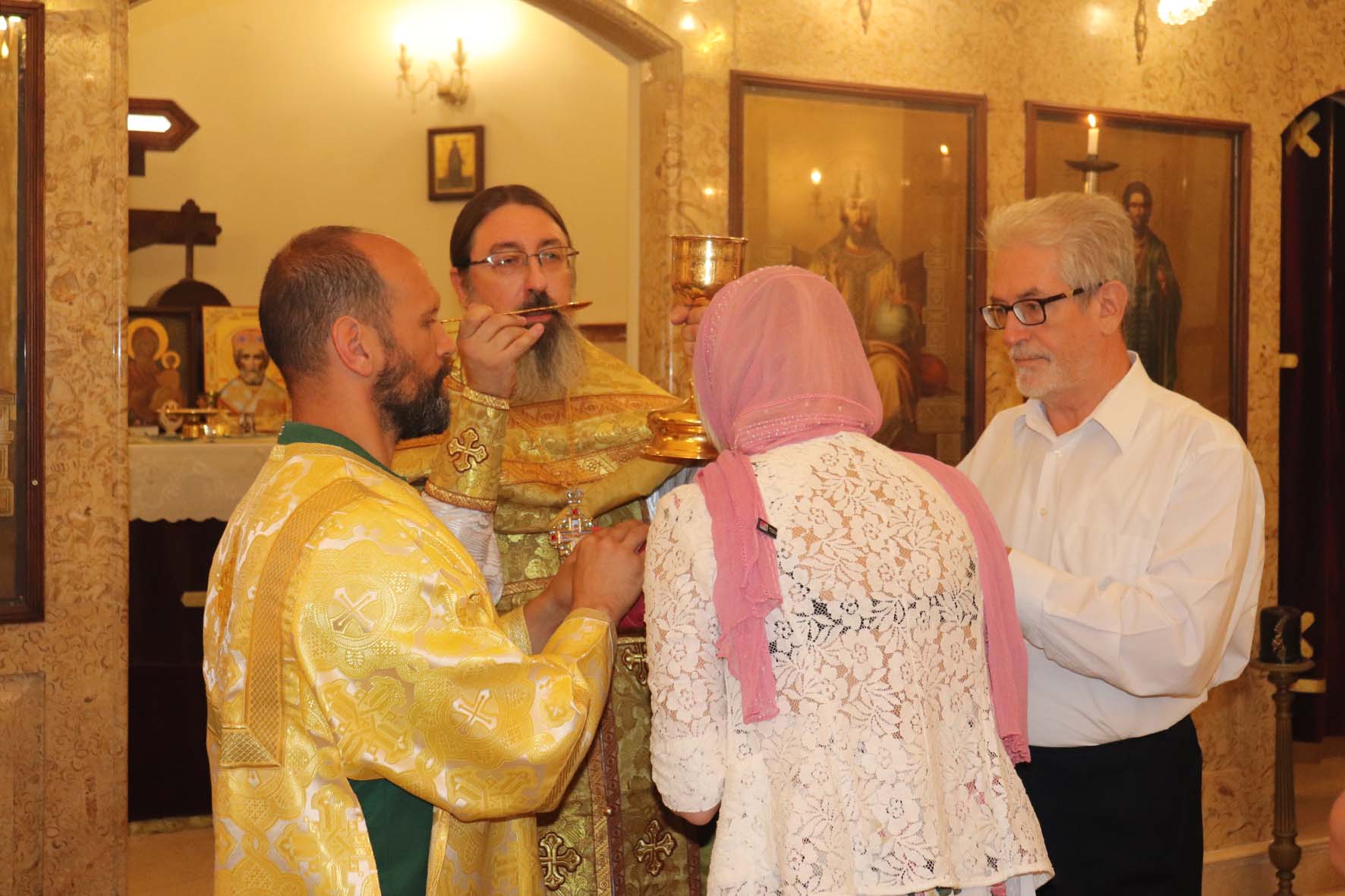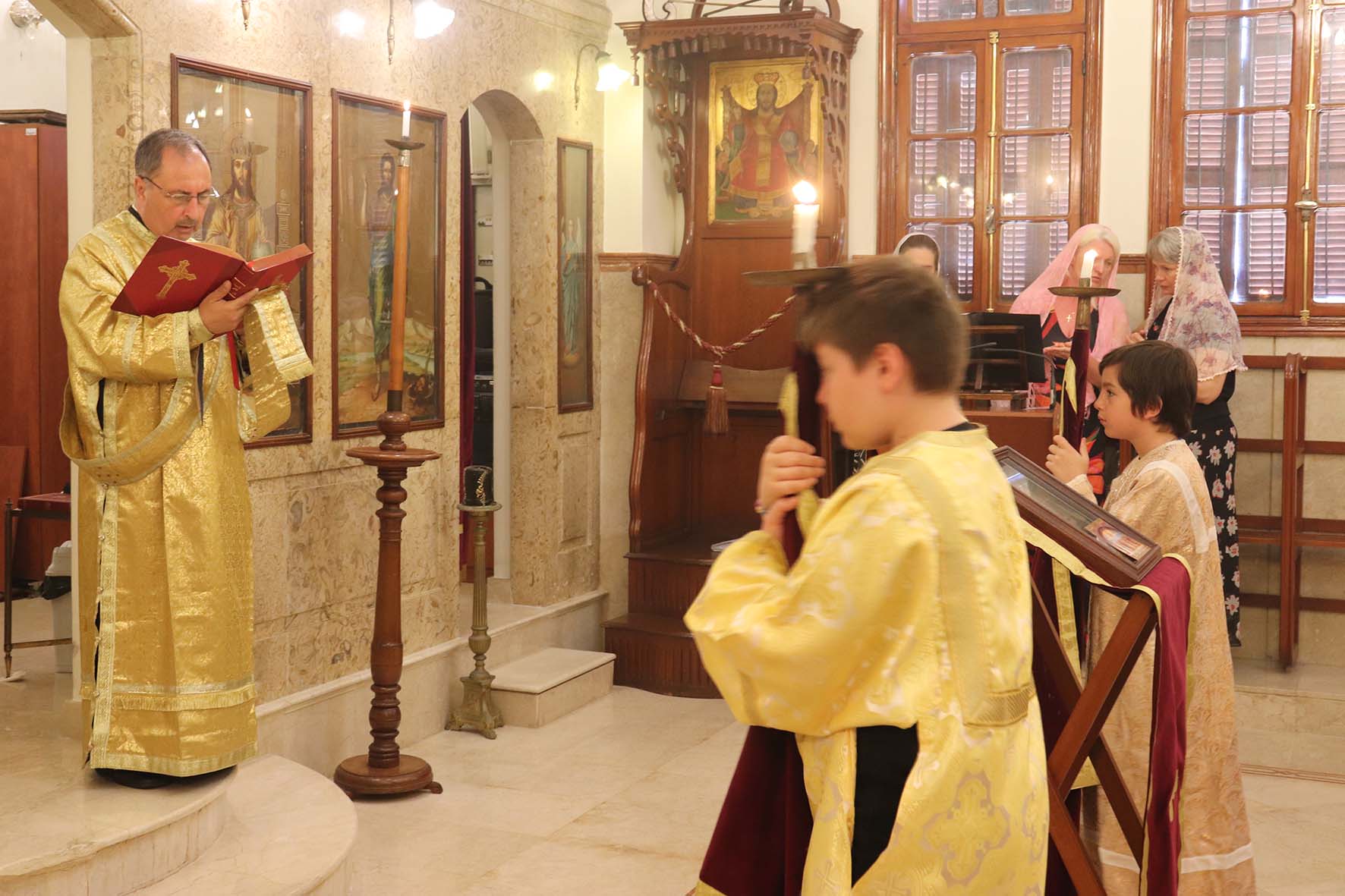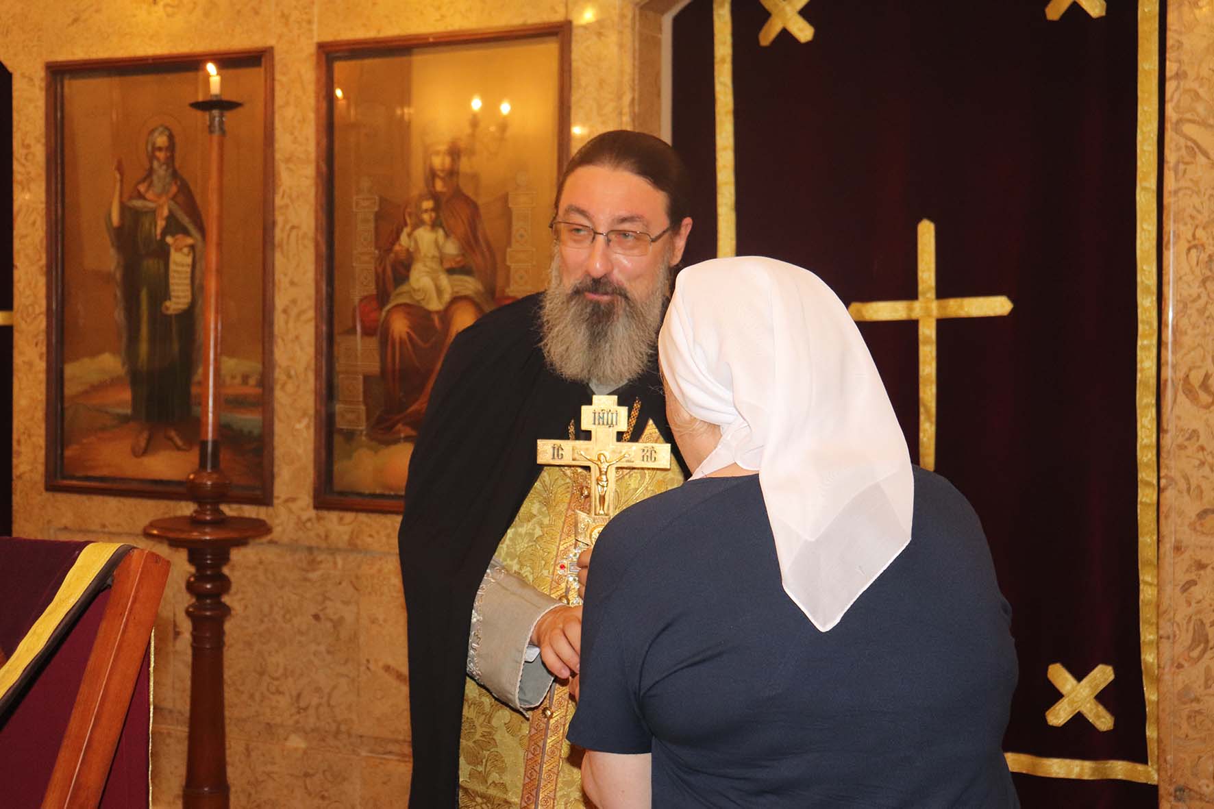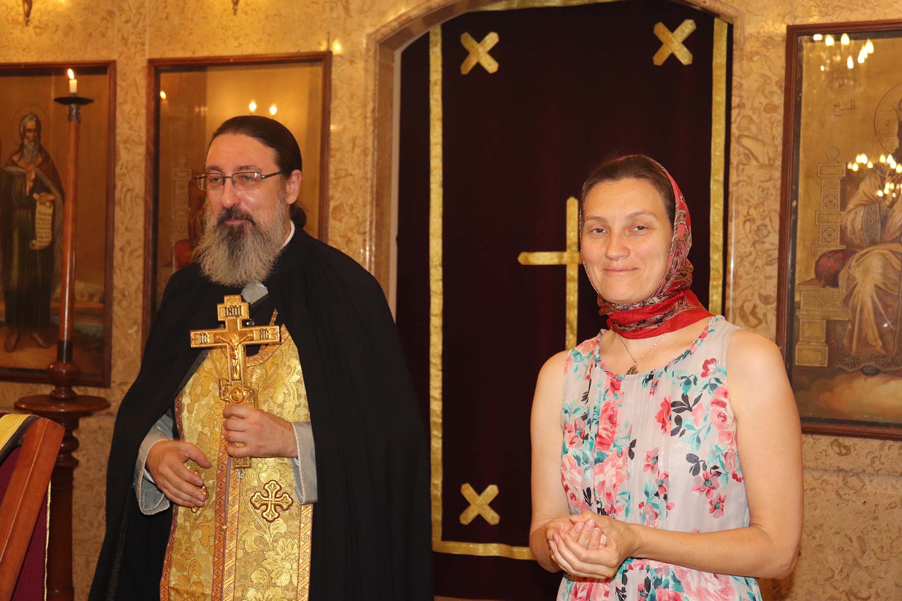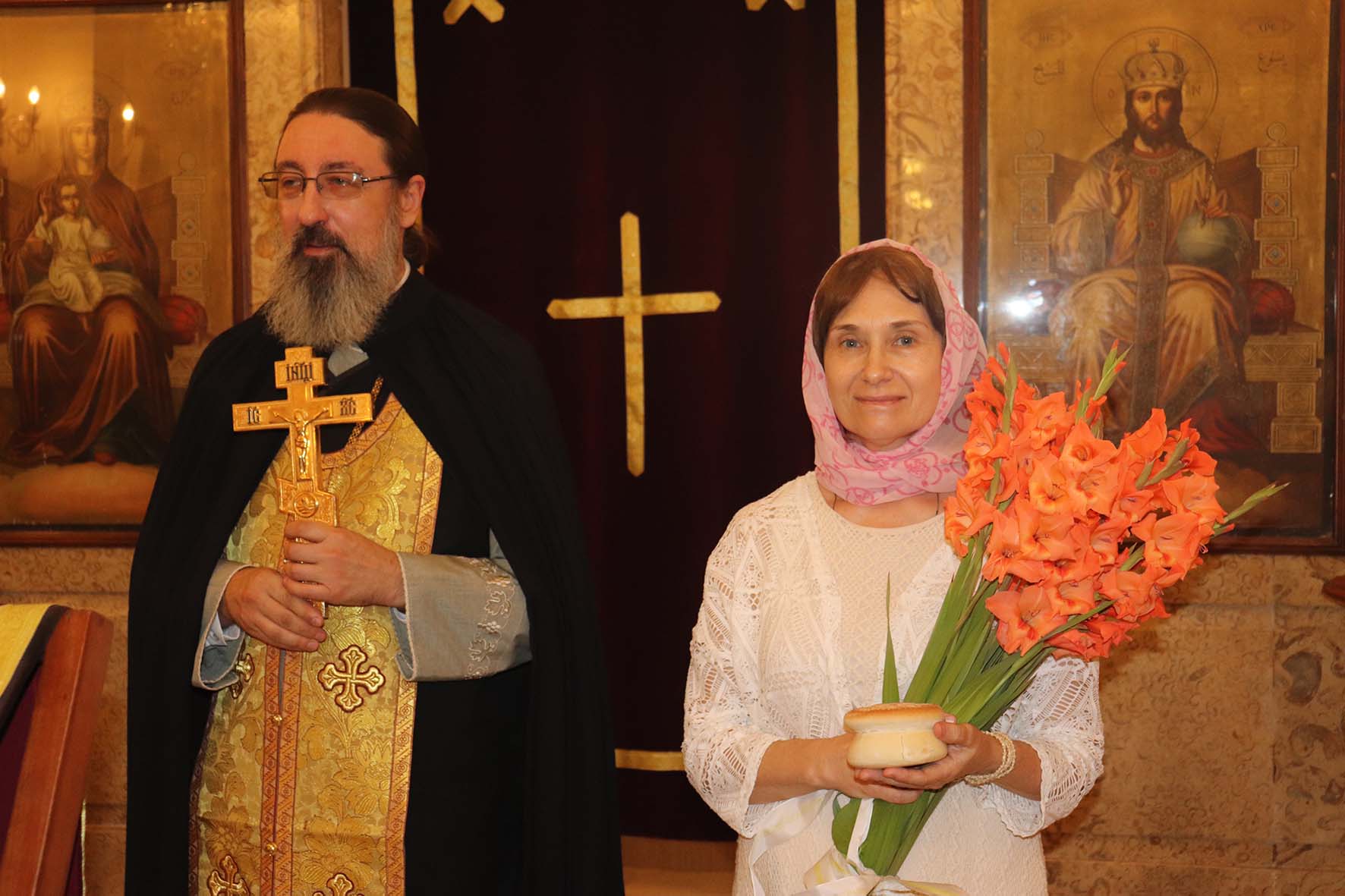 Затем настоятель Подворья поздравил с прошедшим Днём рождения постоянную прихожанку и сотрудницу Подворья Светлану Бахмат, а также М. Ктейш, Н. Дорогову с возвращением в Ливан и Т. Ганчеву с Таинством Крещения и провозгласил многолетие.