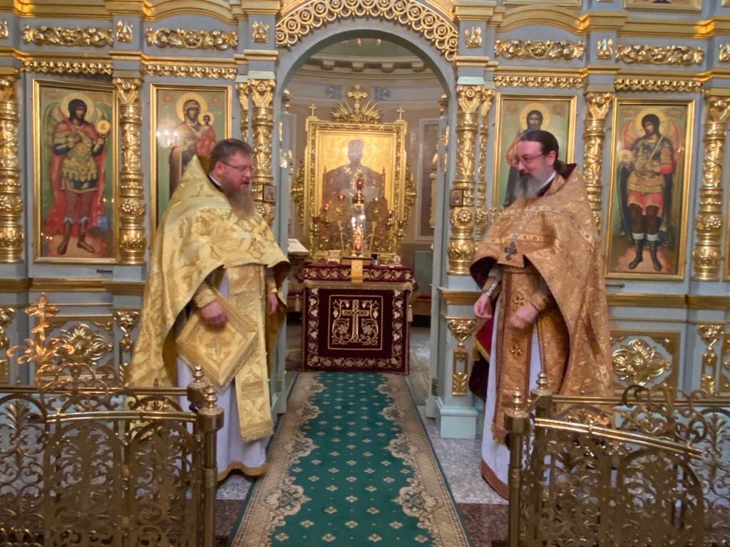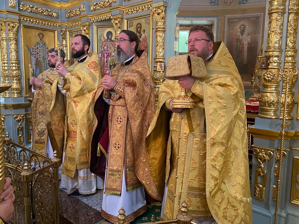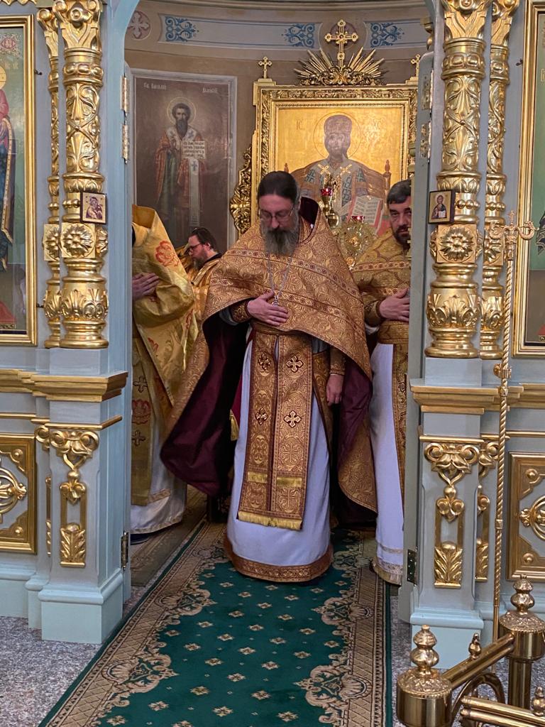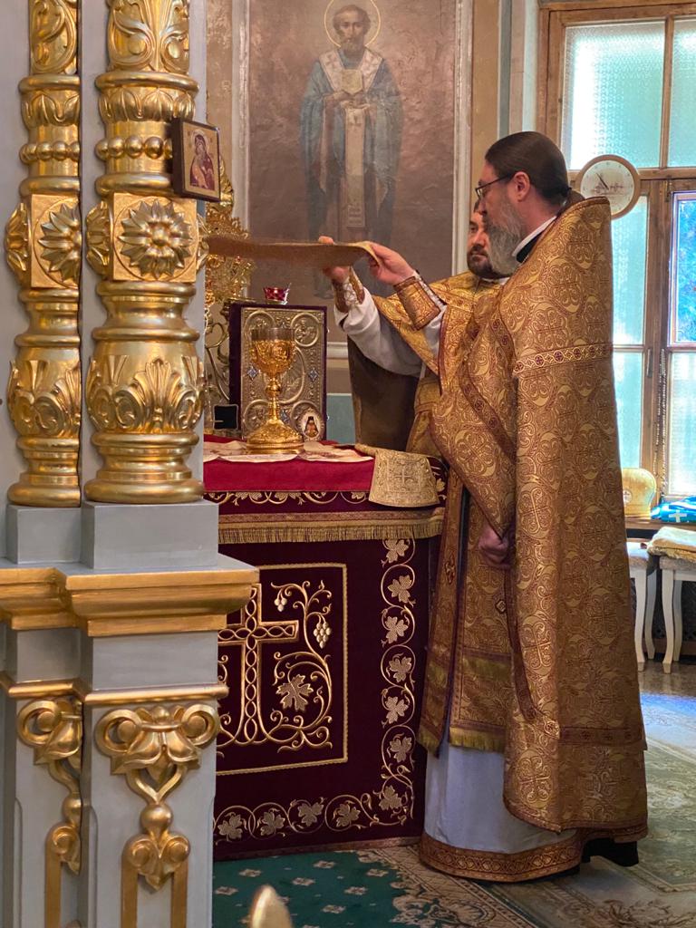 Божественную литургию возглавил архимандрит Серафим в сослужении архимандрита Филиппа, секретаря Подворья иеромонаха Александра (Галушко), иерея Евгения Зацепина и дьякона Григория Люлюшина.