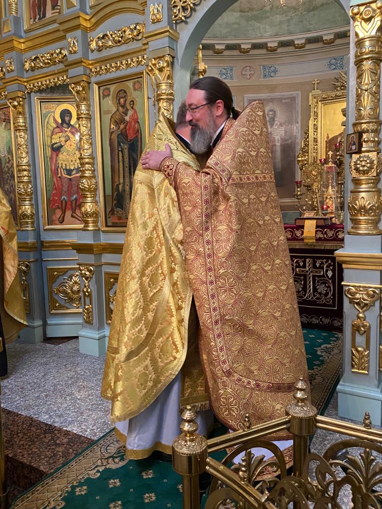 Затем настоятель Подворья Православной Церкви Чешских земель и Словакии архимандрит Серафима тепло приветствовал архимандрита Филиппа и выразил радость от совместного служения Божественной литургии.