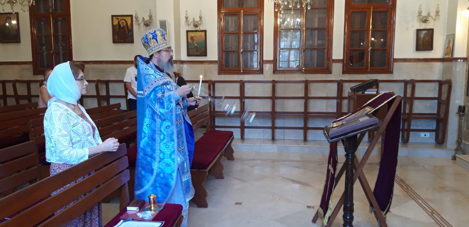 На сугубой ектении прозвучали также прошения о здравии всех пострадавших от взрыва в Бейруте и о всех благотворителях Подворья.