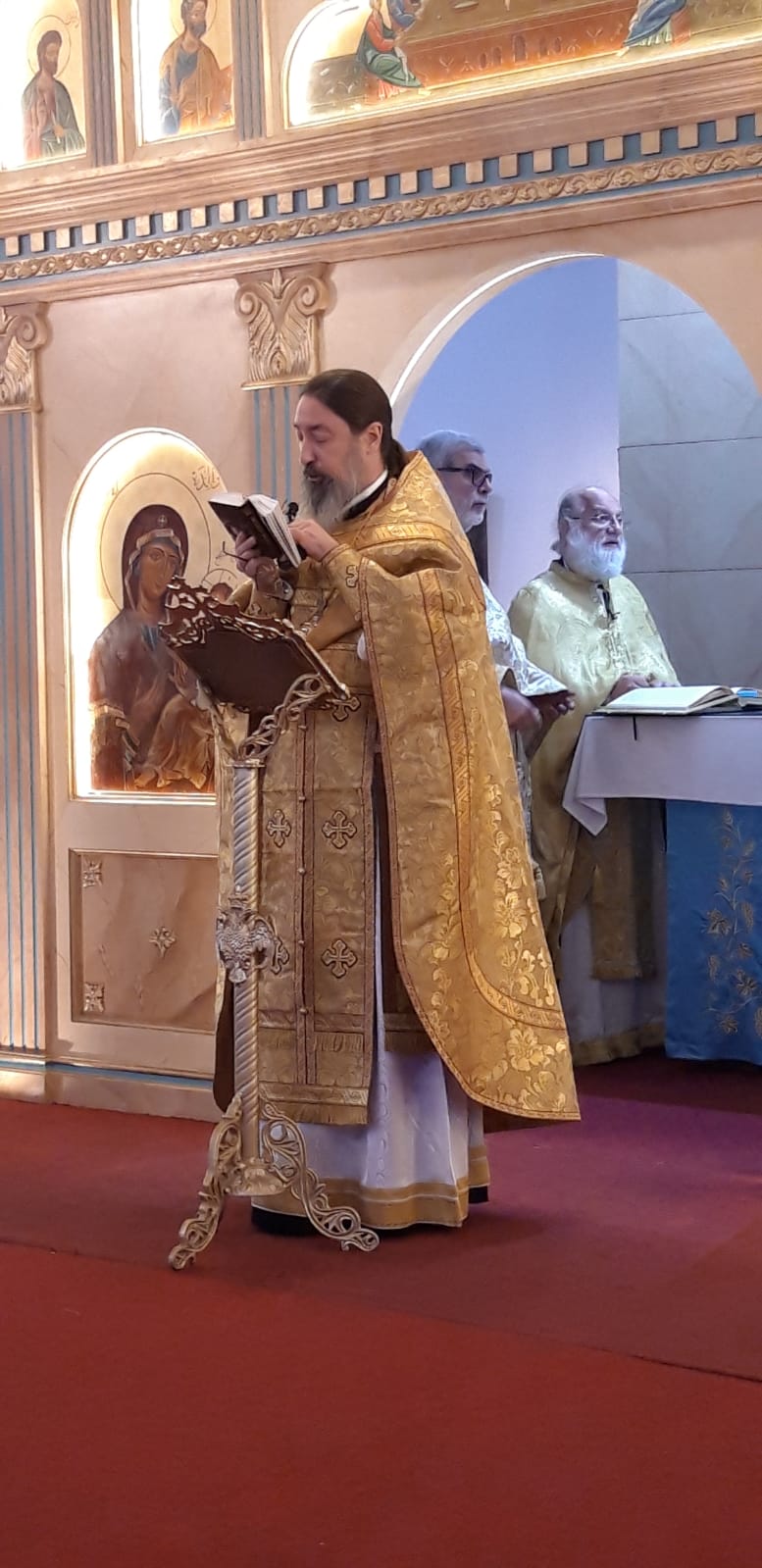 После отпуста Божественной литургии архимандрит Филипп тепло приветствовал сослужащее духовенство протоиерея Самира и архимандрита Исаака и поблагодарил за возможность совершать богослужения в старом храме Благовещения Пресвятой Богородицы в Жаль Эль Диб.