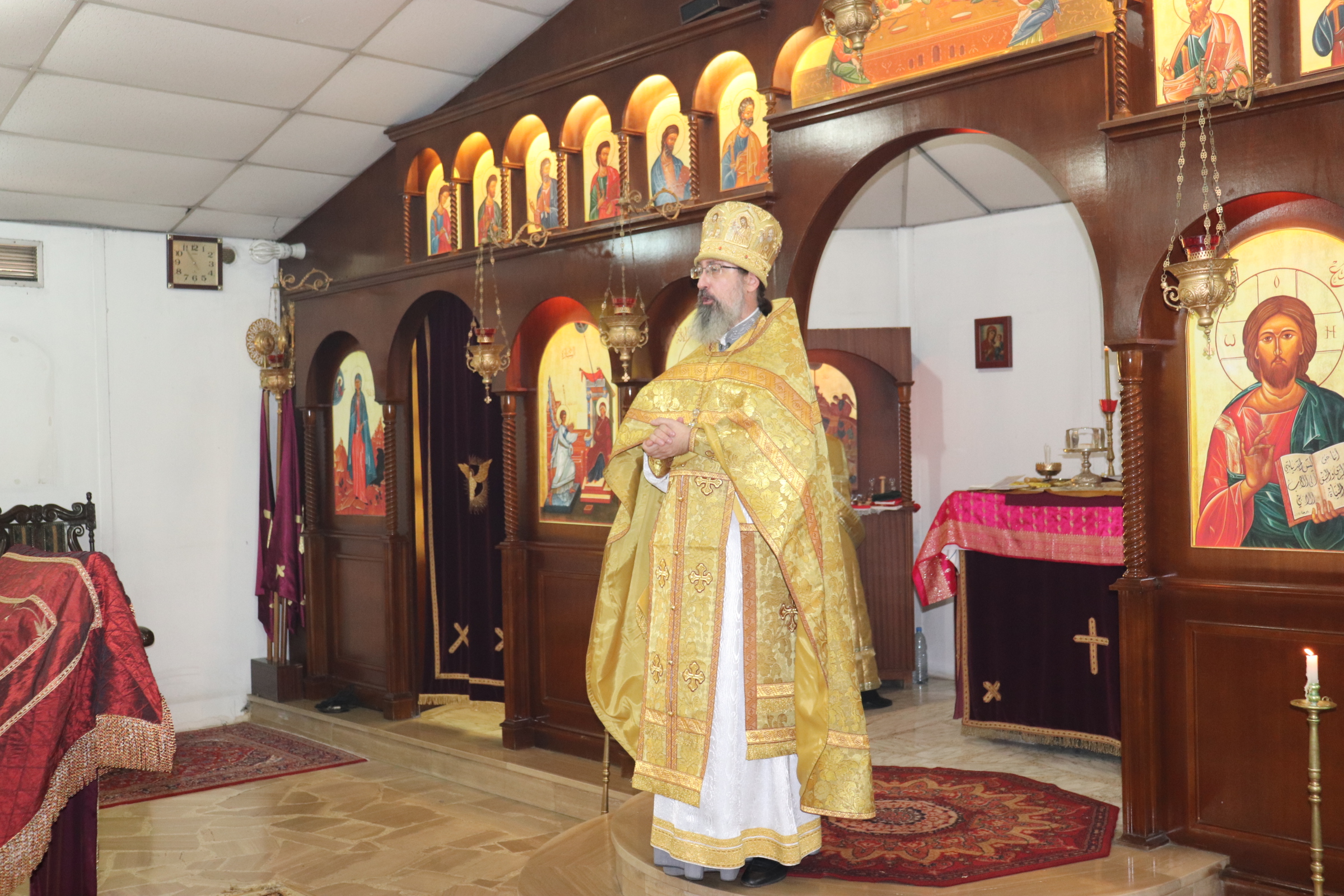 В субботу, 9 октября, в день памяти святаго апостола Иоанна Богослова и святителя Тихона, патриарха Московского и всея России Божественную литургию в храме Благовещения Пресвятой Богородицы в Жаль Эль Диб совершил архимандрит Филипп в сослужении дьякона Максима Сабаха.