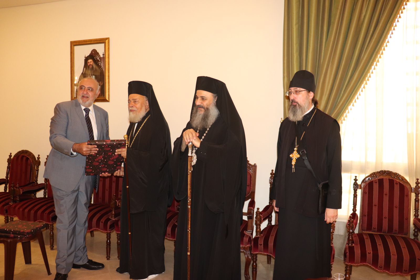 Затем митрополита Антония и митрополита Нифона тепло приветствовал архимандрит Филипп. Настоятель Подворья поздравил митрополита Нифона от лица общины Подворья Русской Православной Церкви в Бейруте с высоким избранием постоянным членом Священного Синода Антиохийской Православной Церкви и вручил ему и владыке Антонию памятные подарки. Настоятель Подворья также поздравил с возведением в сан архимандрита отца Иеремию и подарил ему русский клобук.