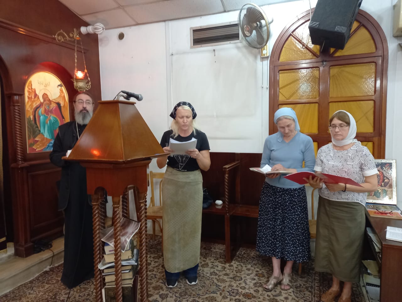 За вечерней молился настоятель Подворья Русской Православной Церкви архимандрит Филипп.