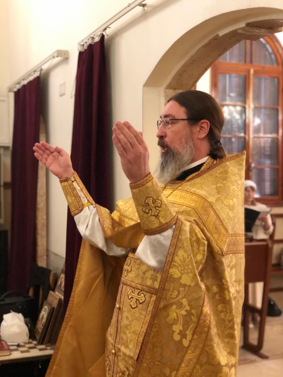 В воскресенье, 31 октября, в Неделю 19-ю по Пятидесятнице Божественную литургию в храме св. Иоанна Предтечи совершил архимандрит Филипп в сослужении иеромонаха Нестора (Чайки), клирика Киевской митрополии, преподавателя КДАиС и дьякона Максима Сабаха.