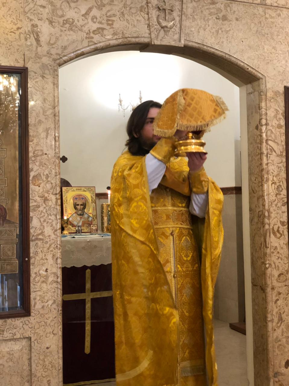 На сугубой ектении прозвучали также прошения о здравии всех пострадавших от взрыва в Бейруте и о всех благотворителях Подворья.