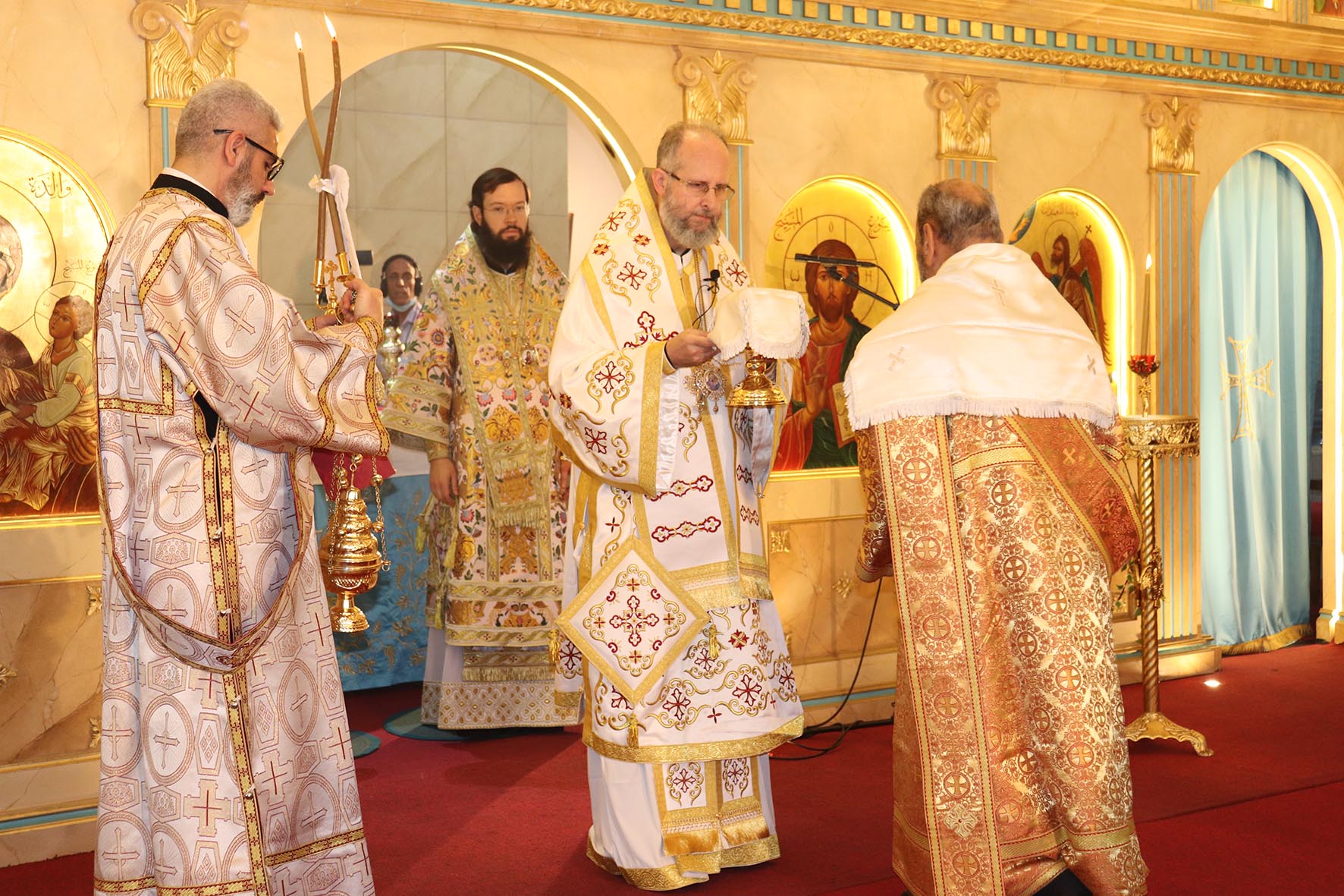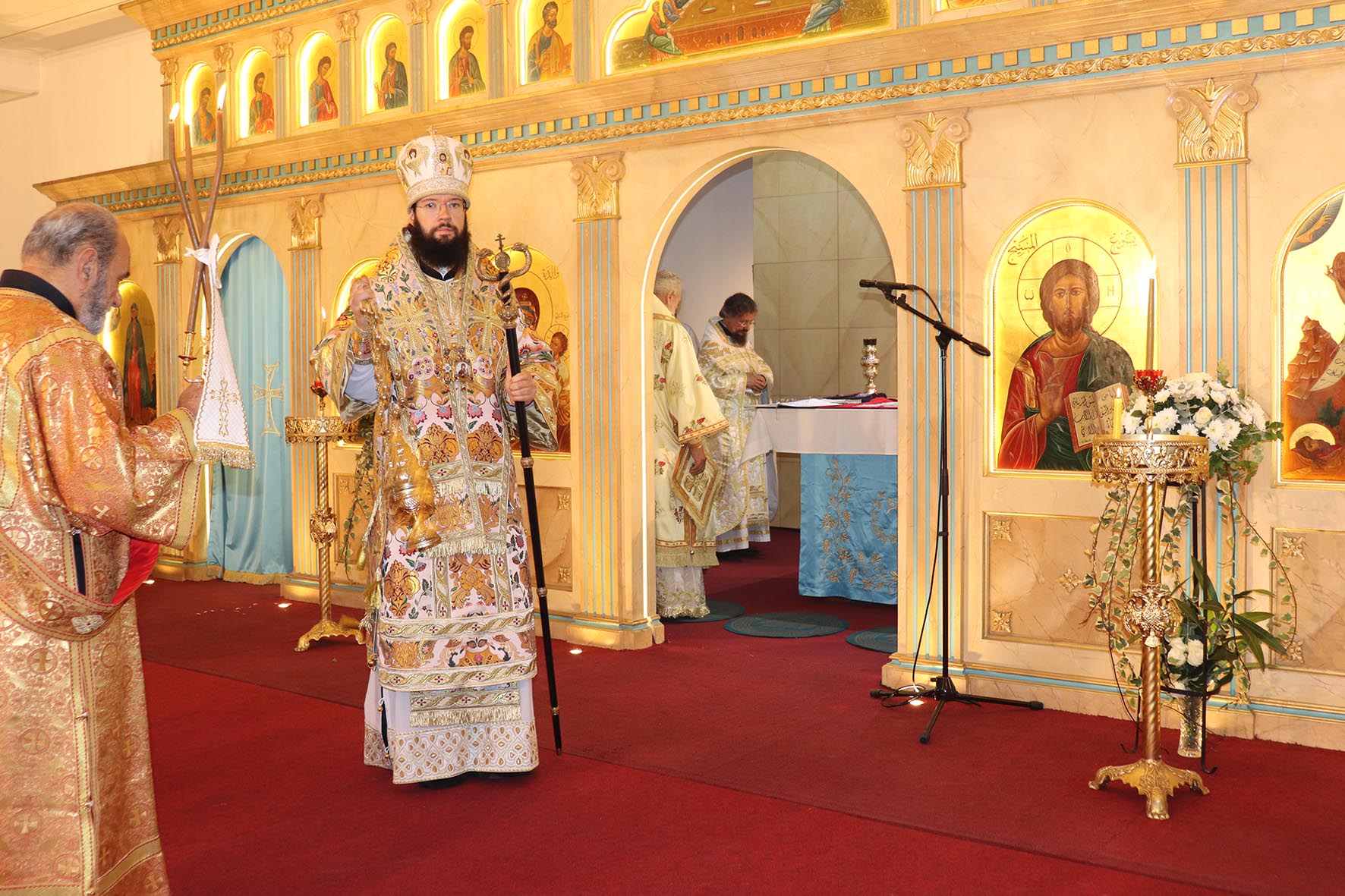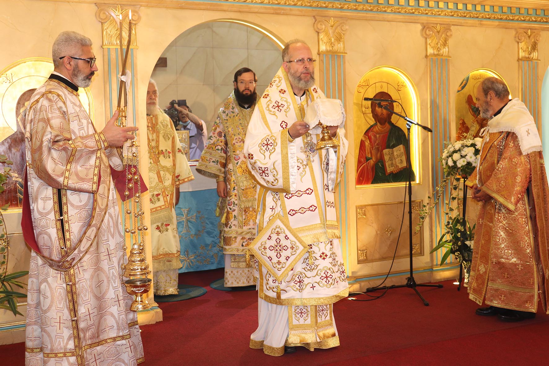 Архиереям сослужили представитель Православной Церкви Чешских земель и Словакии при Патриархе Московском и всея Руси архимандрит Серафим (Шемятовский), настоятель подворья Русской Православной Церкви в Бейруте архимандрит Филипп (Васильцев), представитель Патриарха Московского и всея Руси при Патриархе Антиохийском игумен Арсений (Соколов).