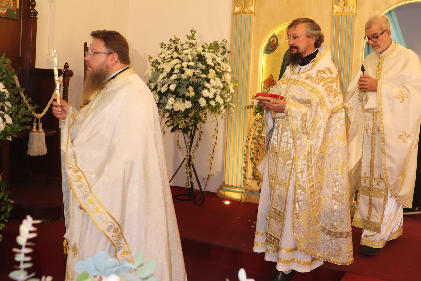 Богослужение совершили митрополит Гор Ливанских Силуан, Патриарший экзарх Западной Европы, руководитель Управления Московской Патриархии по зарубежным учреждениям митрополит Корсунский и Западноевропейский Антоний, представитель Патриарха Антиохийского при Патриархе Московском и всея Руси митрополит Филиппопольский Нифон, представитель Патриарха Сербского при Патриархе Московском и всея Руси епископ Моравичский Антоний.