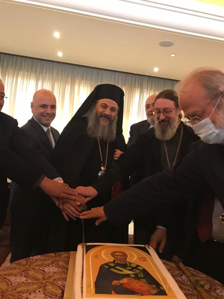 На трапезе был совершен традиционный для Ливана чин разрезания праздничного торта, посвященного престольному празднику кафедрального собора.