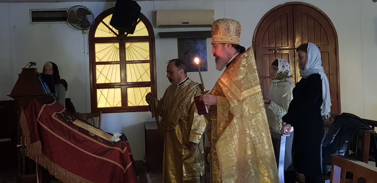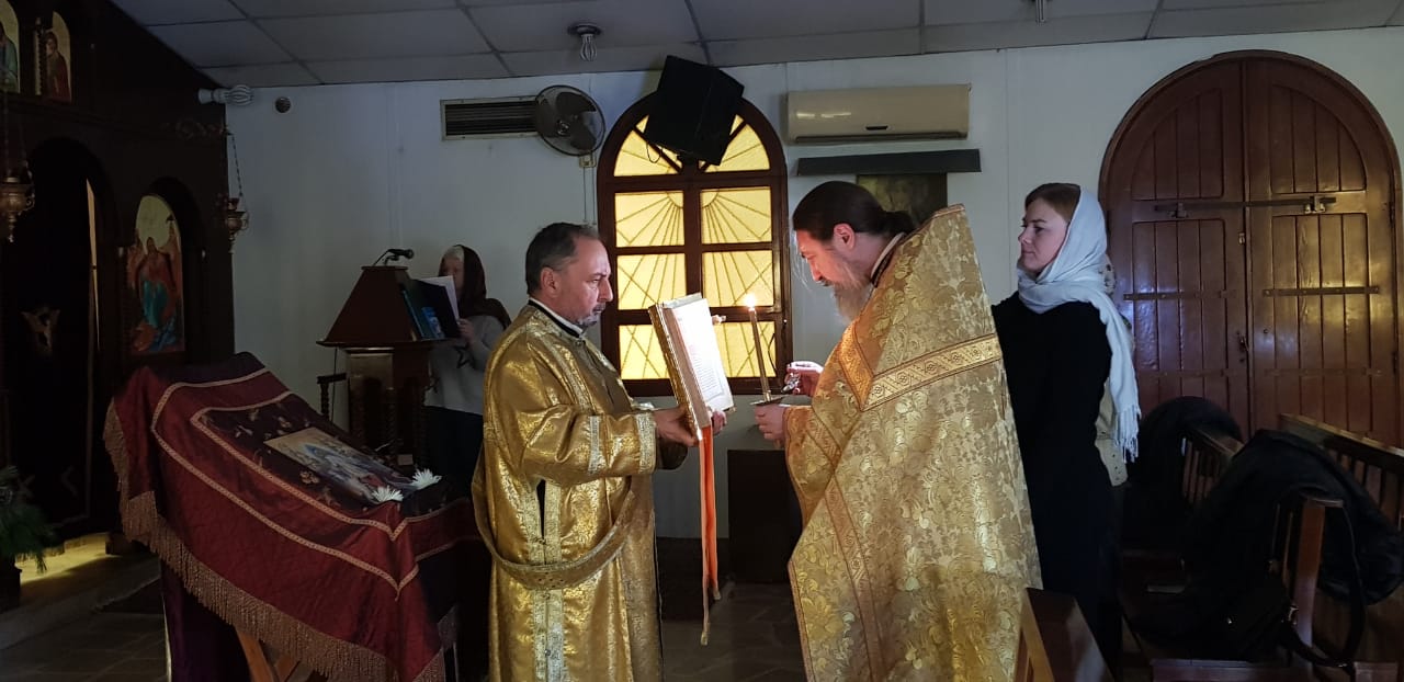 В воскресенье, 30 января, в Неделю 32-ю по Пятидесятнице в храме Благовещения Пресвятой Богородицы в Жаль Эль Диб была совершена Воскресная Утреня и Божественная литургия. Богослужение совершил архимандит Филипп в сослужении диакона Максима Сабаха.