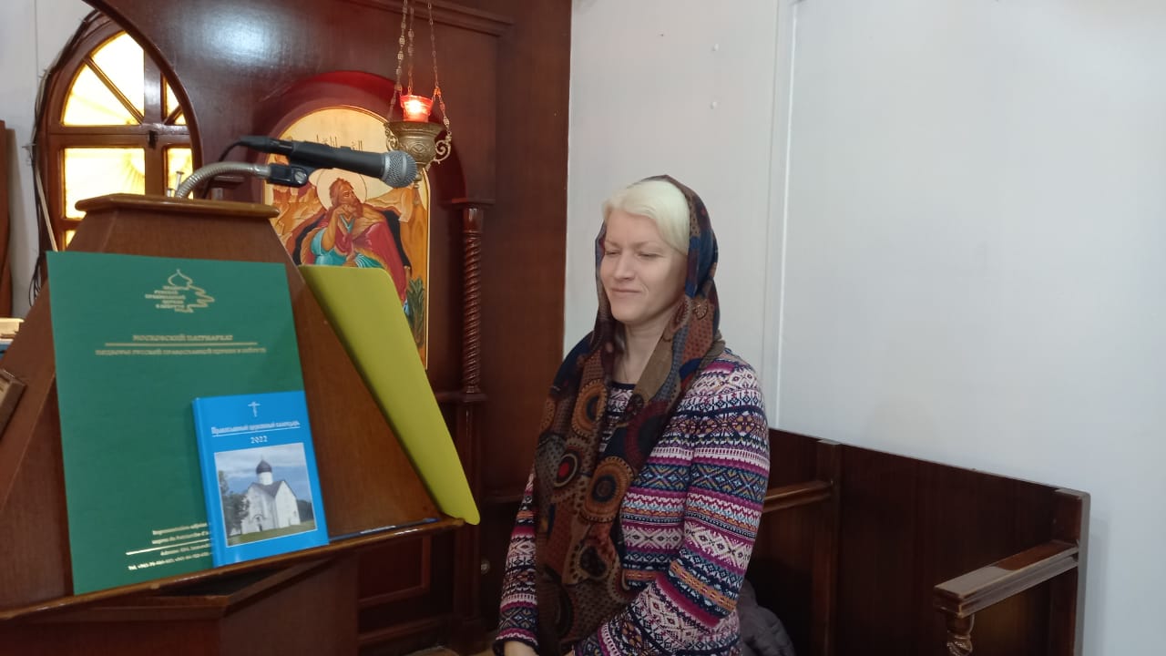 Затем архимандрит Филипп поздравил с прошедшим днём рождения регента Подворья Екатерину Баранову и вручил ей букет цветов, памятные подарки и провозгласил ей многолетие.