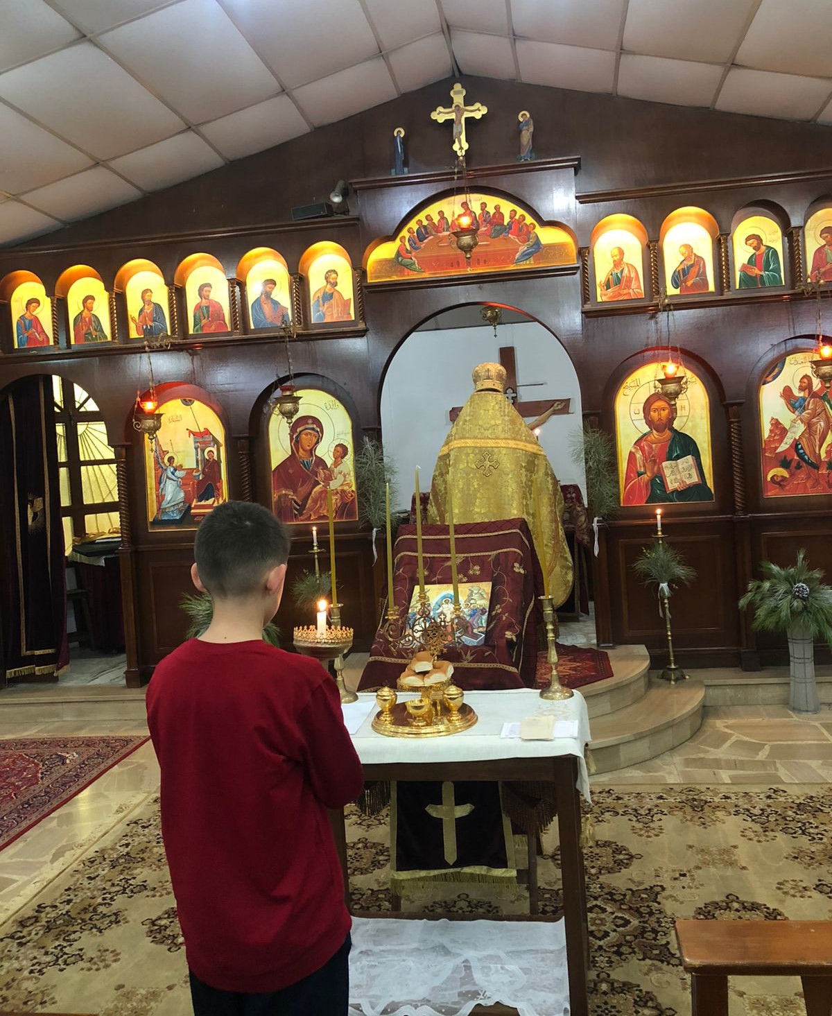 После отпуста богослужения настоятель произнёс проповедь на тему праздника и прочитал молитву о восстановлении мира.