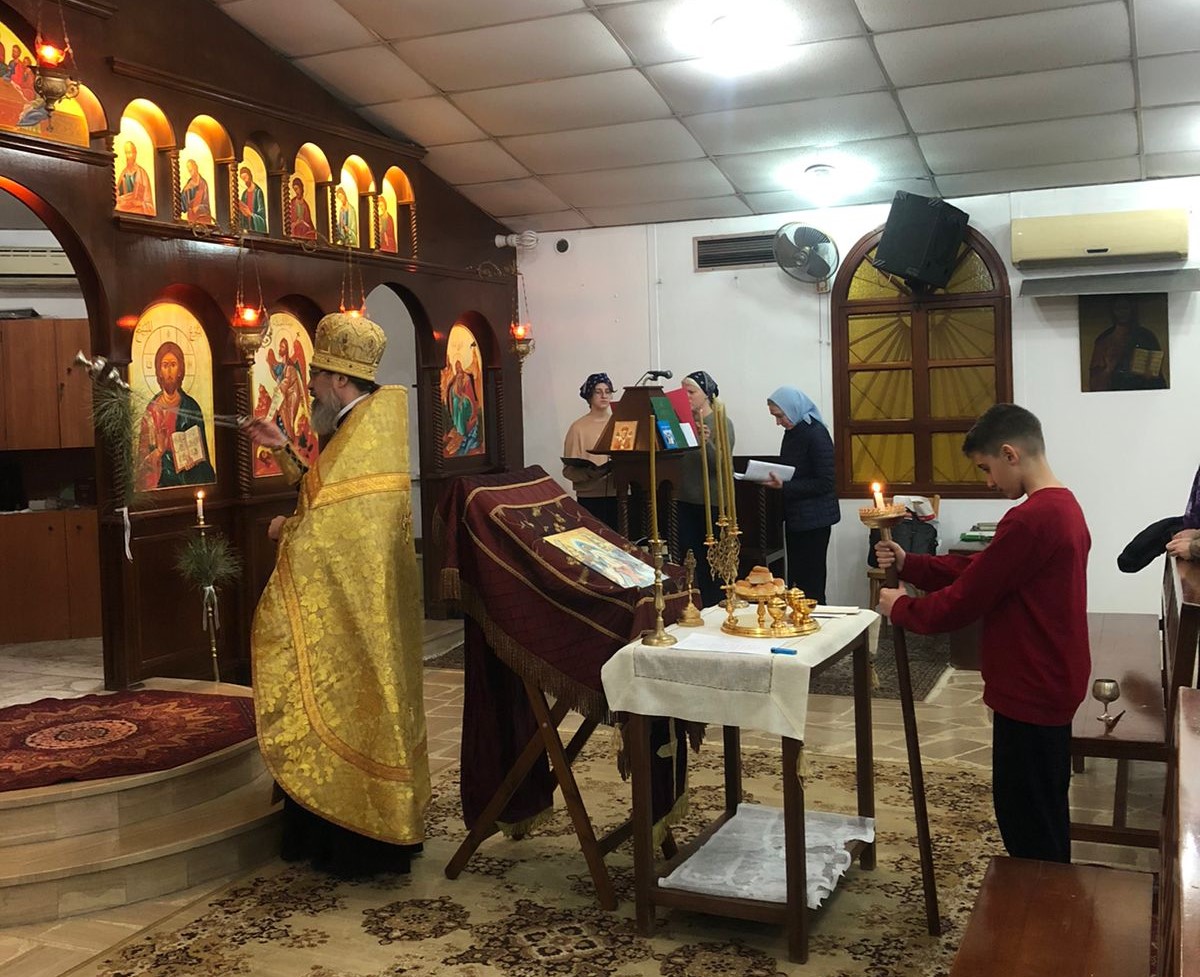 В субботу, 5 марта, в храме Благовещения Пресвятой Богородицы в Жаль Эль Диб была совершена Воскресная вечерня с литией. Богослужение совершил архимандрит Филипп.
