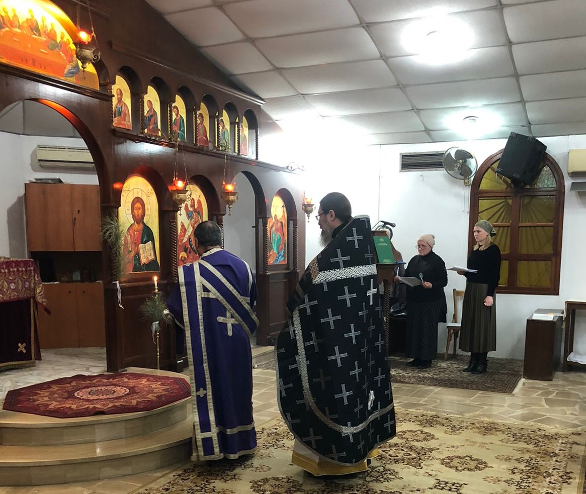 В среду 2-й седмицы Великого поста в храме Благовещения Пресвятой Богородицы в Жаль Эль Диб была совершена Литургия Преждеосвященных Даров. Богослужение возглавил архимандрит Филипп в сослужении дьякона Максима Сабаха.