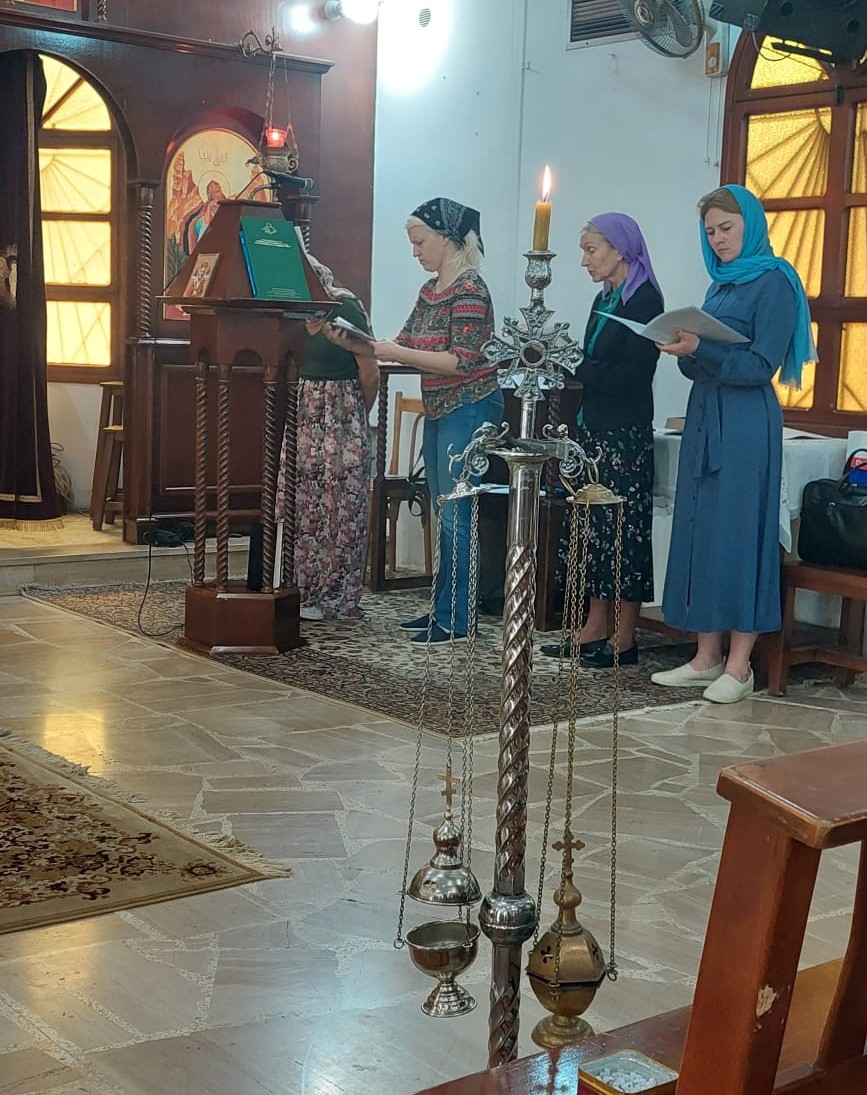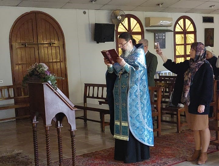 В субботу, 9 апреля, в день Похвалы Пресвятой Богородицы в храме Благовещания в Жаль Эль Диб была совершена Утреня с пением акафиста Пресвятой Богородицы. Богослужение совершил архимандрит Филипп. После отпуста Утрени настоятель произнес проповедь на тему праздника.