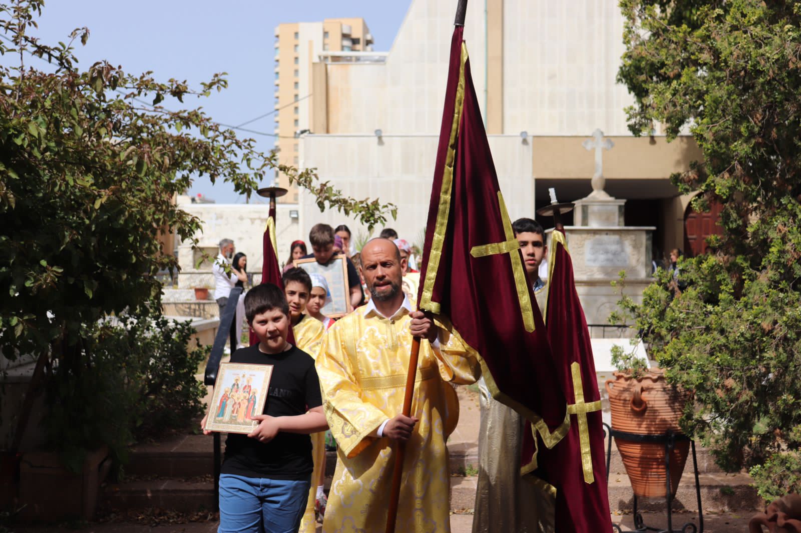 После отпуста Божественной литургии по традиции Православной Антиохийской Церкви был совершён крестный ход.