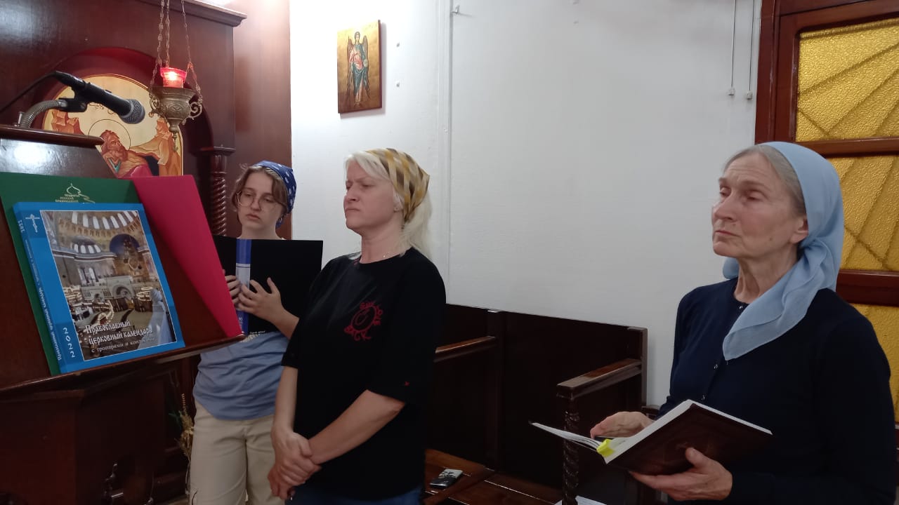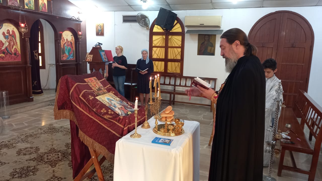 В субботу, 7 мая, в канун Недели 3-й по Пасхе, святых жён-мироносиц Воскресную вечерню с литией в храме Благовещения Пресвятой Богородицы в Жаль Эль Диб совершил архимандрит Филипп.