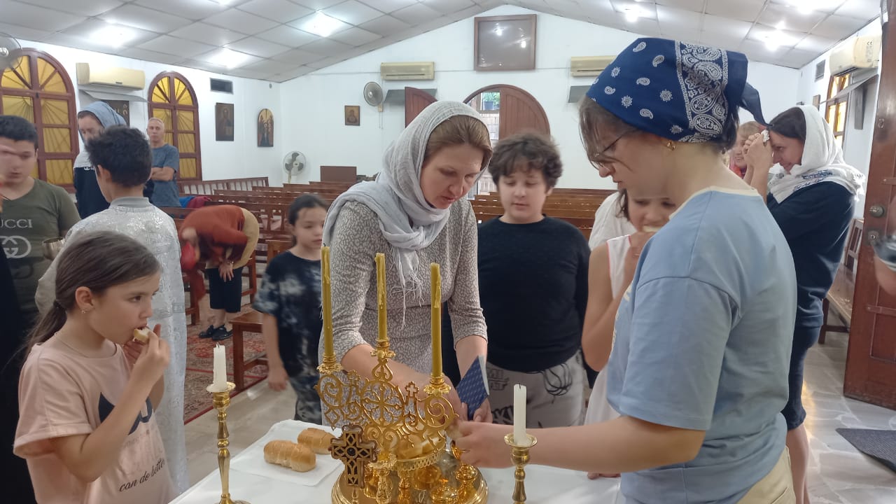 После отпуста Воскресной Вечерни настоятель помазал прихожан освящённым елеем прихожан Подворья.