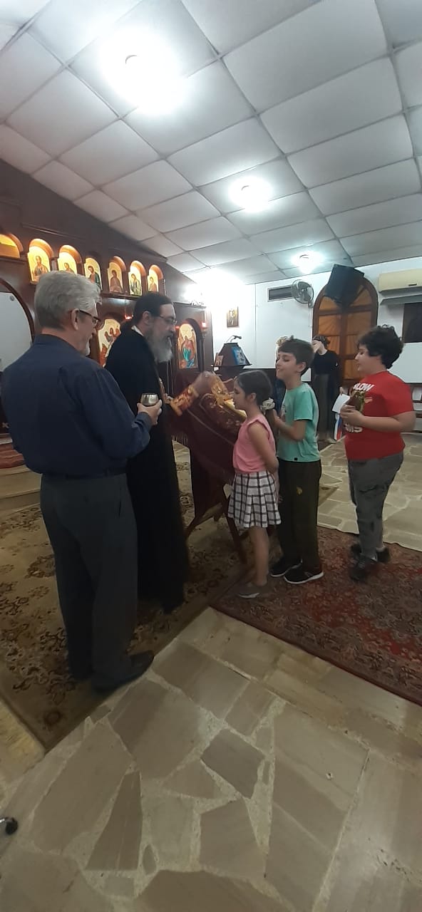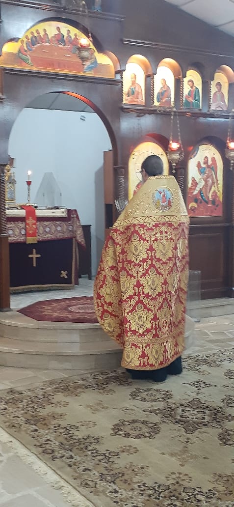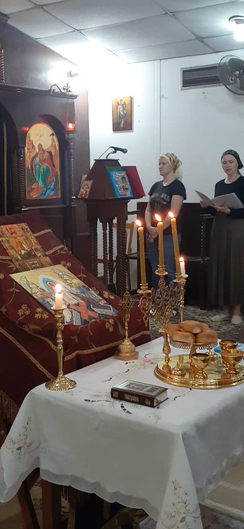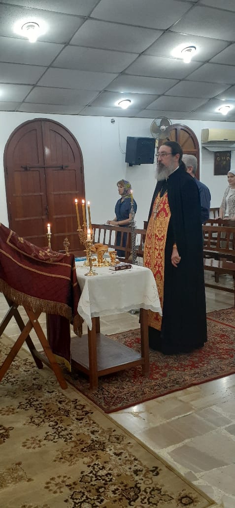 В субботу, 14 мая, накануне Недели 4-ой по Пасхе, о расслабленном, в день памяти перенесения мощей блгвв. кнн. Российских Бориса и Глеба, во Святом Крещении Романа и Давида и блгв. и равноап. царя Бориса, во Святом Крещении Михаила в храме Благовещения Пресвятой Богородицы в Жаль Эль Диб была совершена Воскресная вечерня с литией. Богослужение совершил архимандрит Филипп.