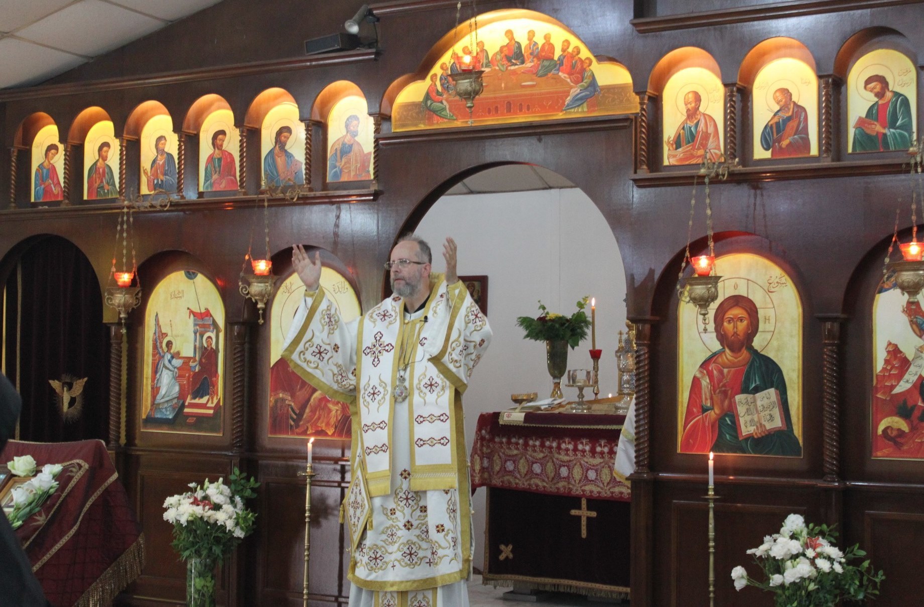 Богослужение совершалось на арабском и церковнославянском языках.