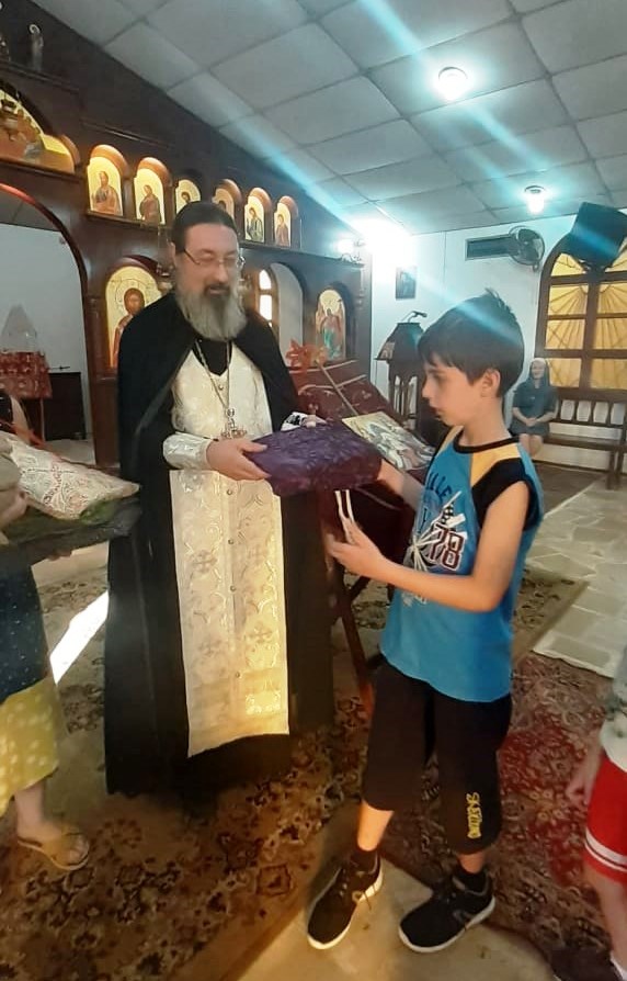Затем настоятель поздравил учеников и преподавателей школы «Исток» при Подворье с окончанием учебного года и подарил каждому памятный подарок.