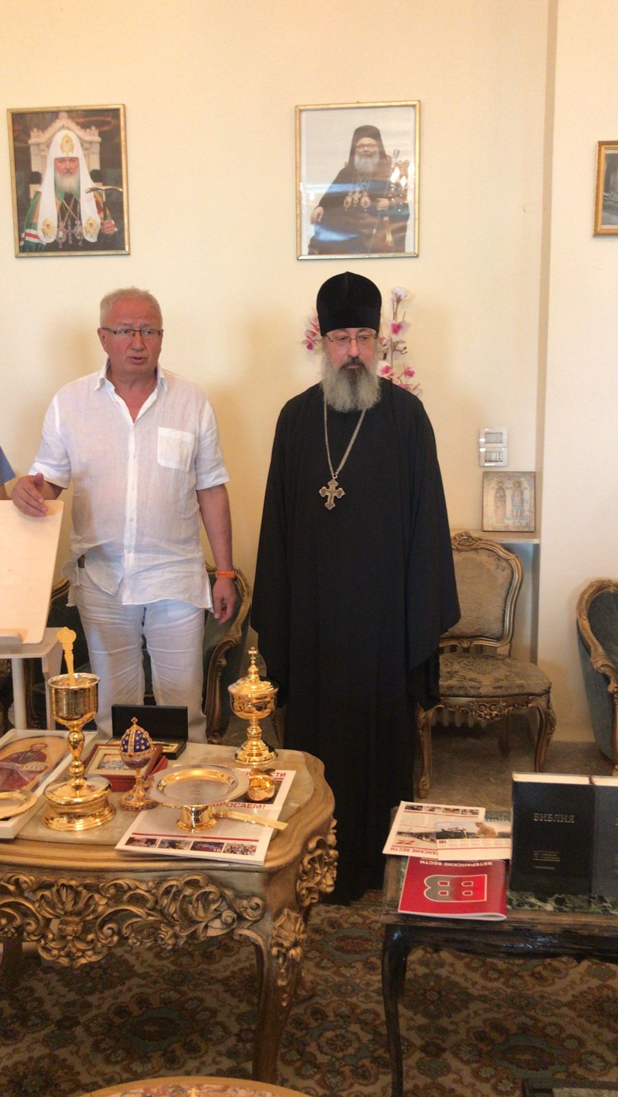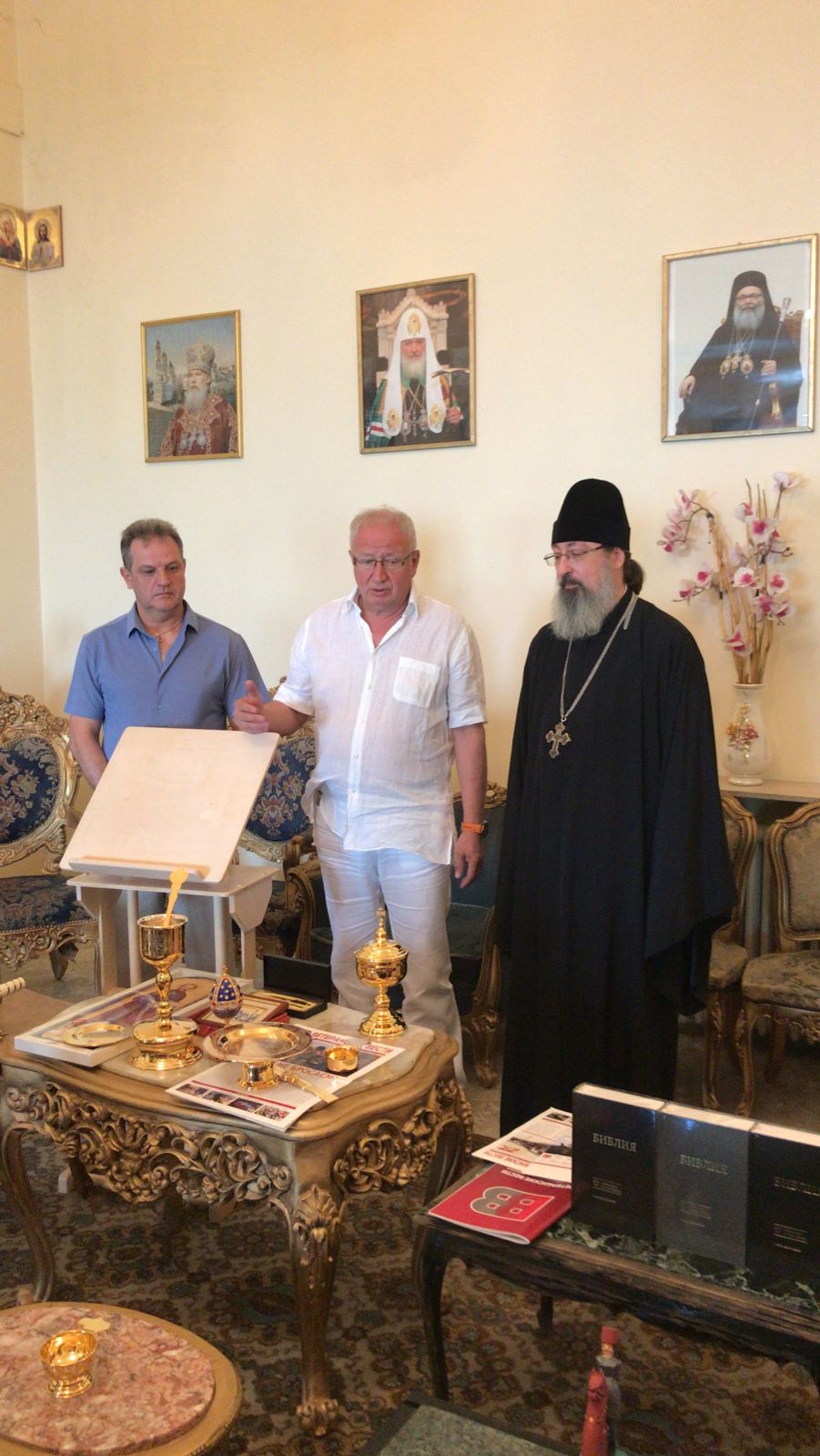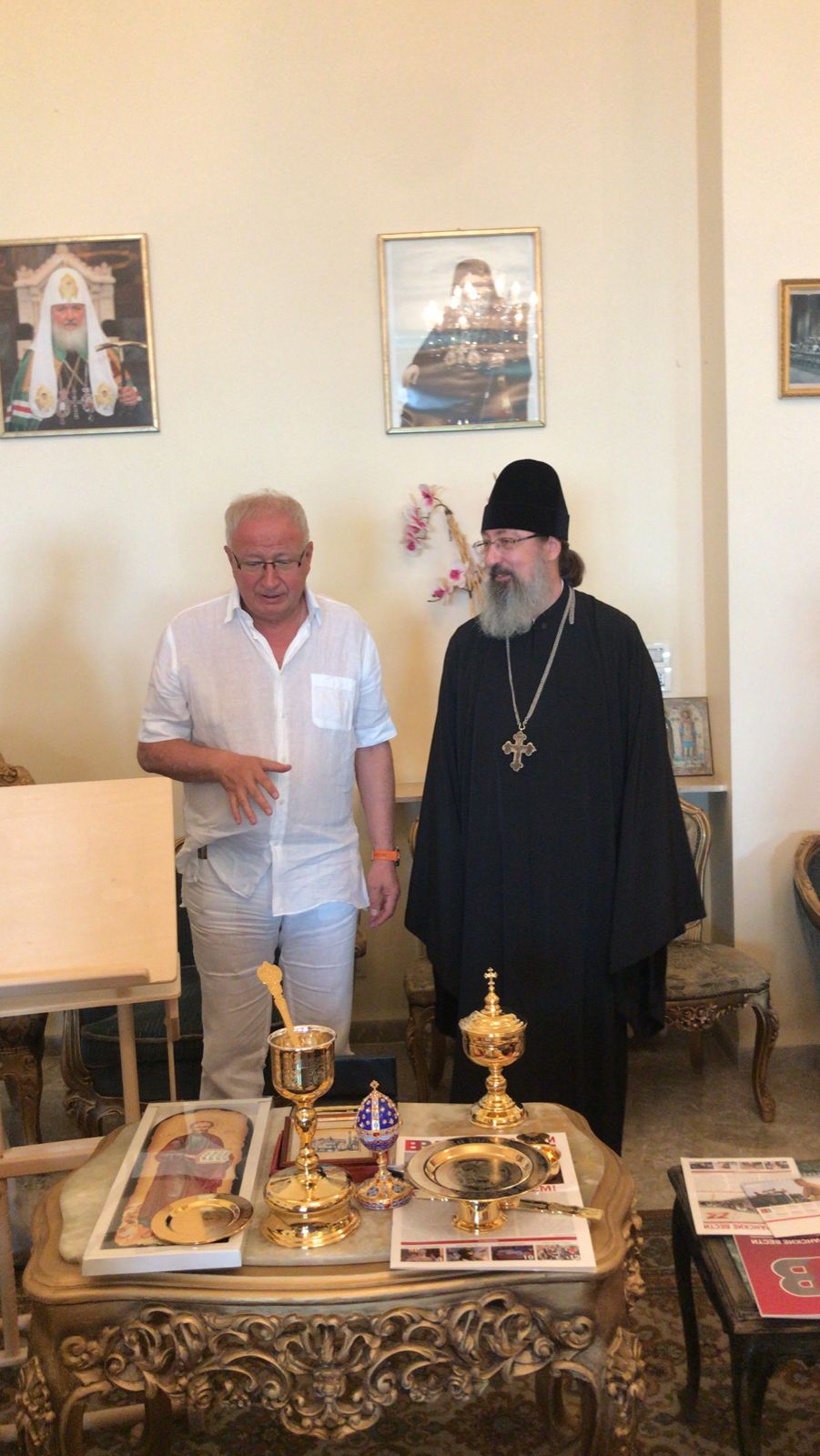 Богослужебные предметы были приобретены на средства Московского правительства и переданы представителю Святейшего Патриарха Московского и всея Руси при Антиохийском Патриаршем Престоле архимандриту Филиппу делегацией Московского правительства во главе с Заместителем руководителя Департамента внешнеэкономических и международных связей города Москвы И.П. Ткачом.