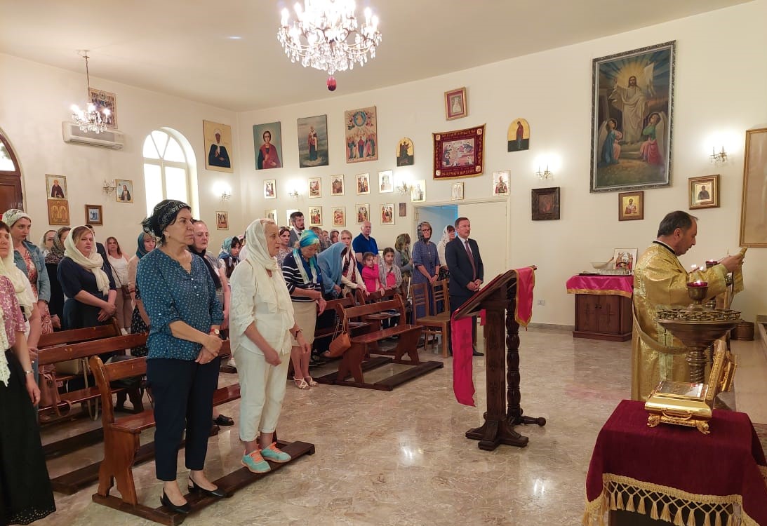 В воскресенье, 26 июня, в Неделю Всех святых, в земле Русской просиявших, в храме св. священномученика Игнатия Богоносца при Представительстве Русской Православной Церкви в Дамаске была совершенна Божественная литургия.