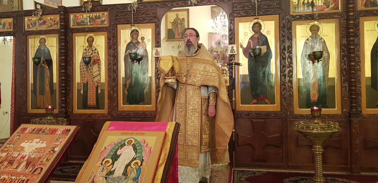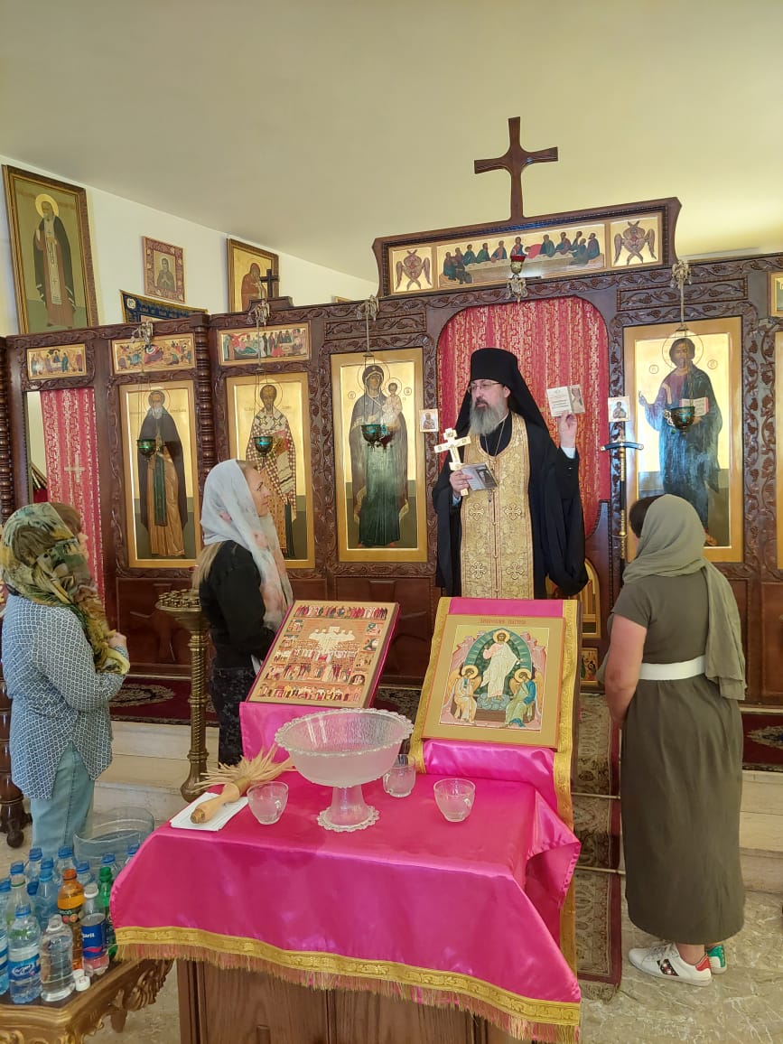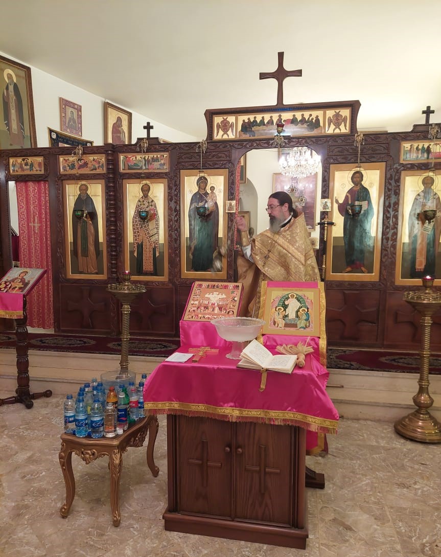 Богослужение возглавил представитель Святейшего Патриарха Московского и всея Руси при Патриархе Великой Антиохии и всего Востока архимандрит Филипп в сослужении диакона Максима Сабаха. Богослужение совершалось на арабском и церковнославянском языках.