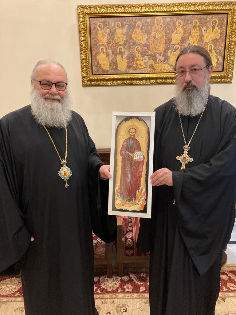 В заключение встречи архимандрит Филипп преподнес Блаженнейшему Патриарху Иоанну икону св. ап. Павла, а также комплект евхаристических сосудов.
