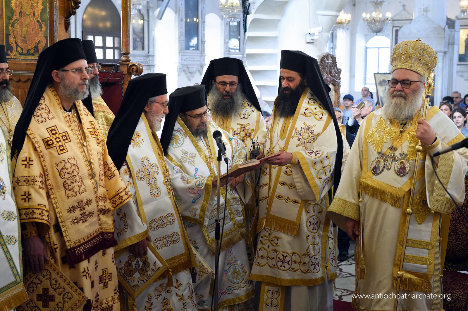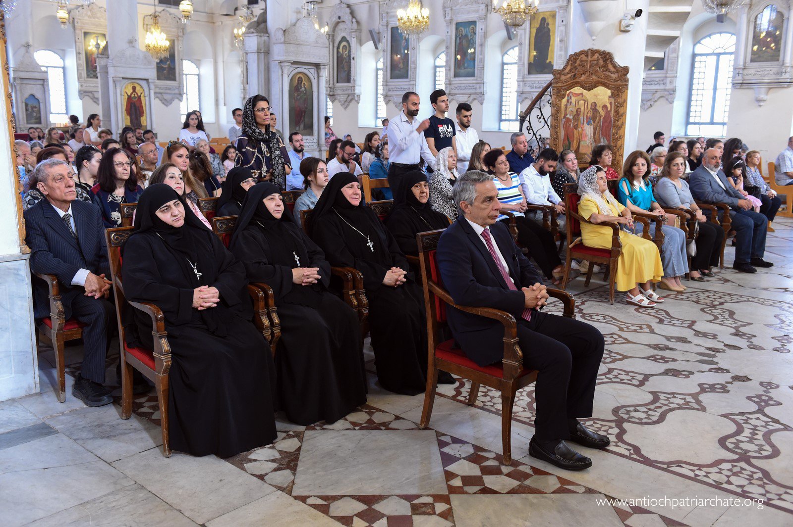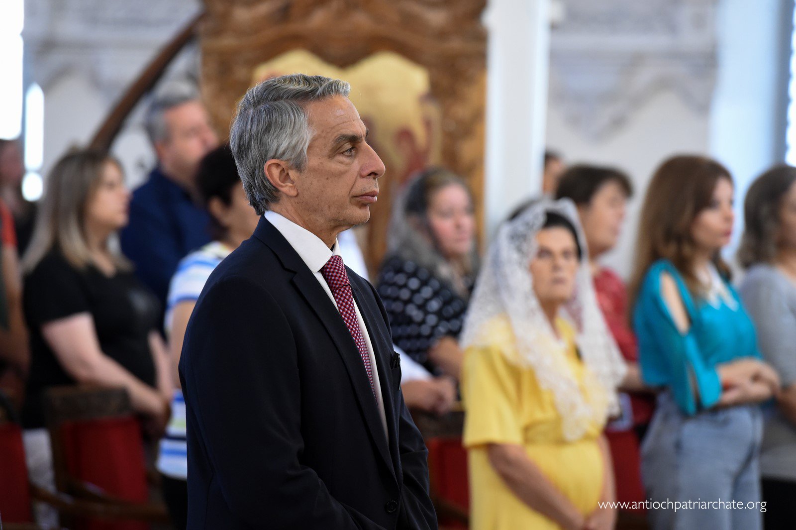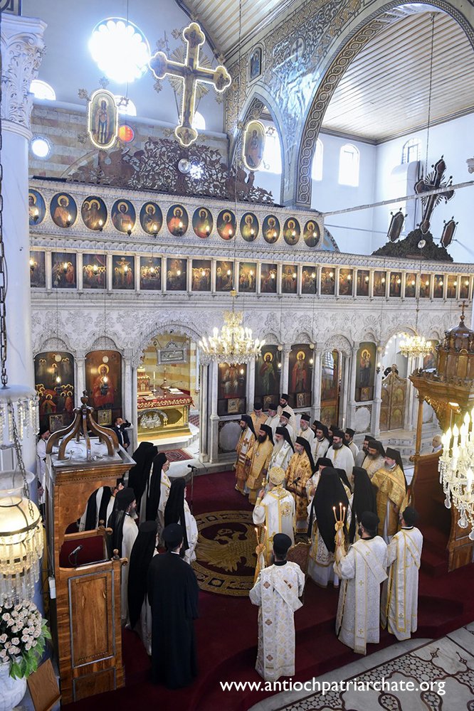 Божественную литургию возглавил Предстоятель Антиохийской Православной Церкви Блаженнейший Патриарх Иоанн Х в сослужении митрополита Тирского и Сидонского Илии, митрополита Хомского Георгия, митрополита Гор Ливанских Силуана, митрополита Багдадского и Кувейтского Гаттаса, митрополита Латакийского Афанасия, митрополита Буэнос-Айресского и всея Аргентины Иакова, митрополита Алеппского и Александретского Ефрема, епископов Мусы Хури, Григория Хури, Иоханна Батша, Арсаниоса Дахдала и Мусы Аль-Хаси, представителя Святейшего Патриарха Московского и всея Руси при Антиохийской Православной Церкви архимандрита Филиппа (Васильцева), наместника Патриаршего ставропигиального Свято-Успенского монастыря в городе Баламанд (Ливан) архимандрита Романа (Ханнат), декана Богословского факультета Баламандского университета архимандрита Иакова (Халиль).