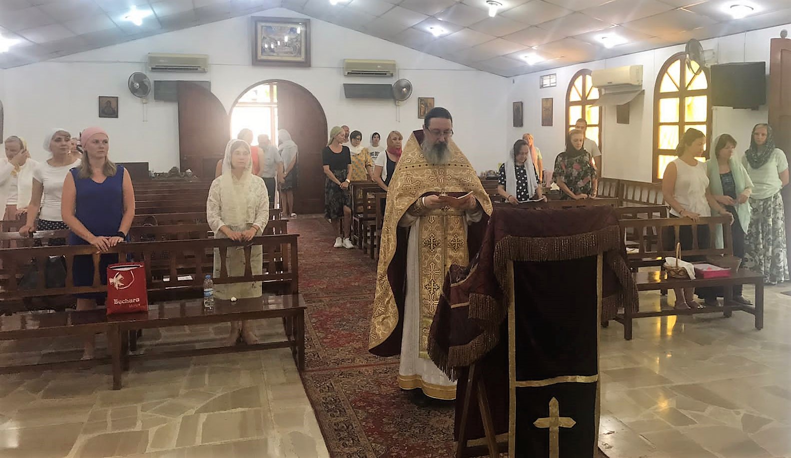 Богослужения совершались на арабском и церковнославянском языках.