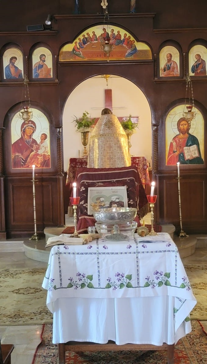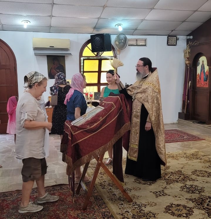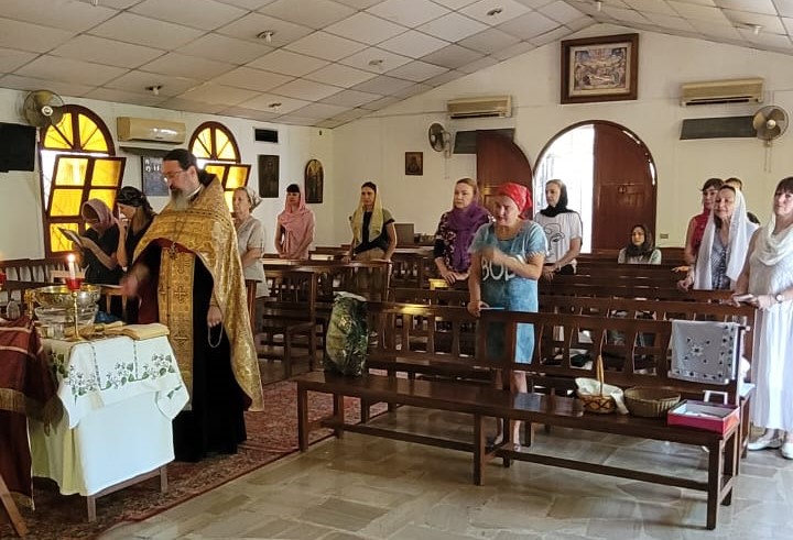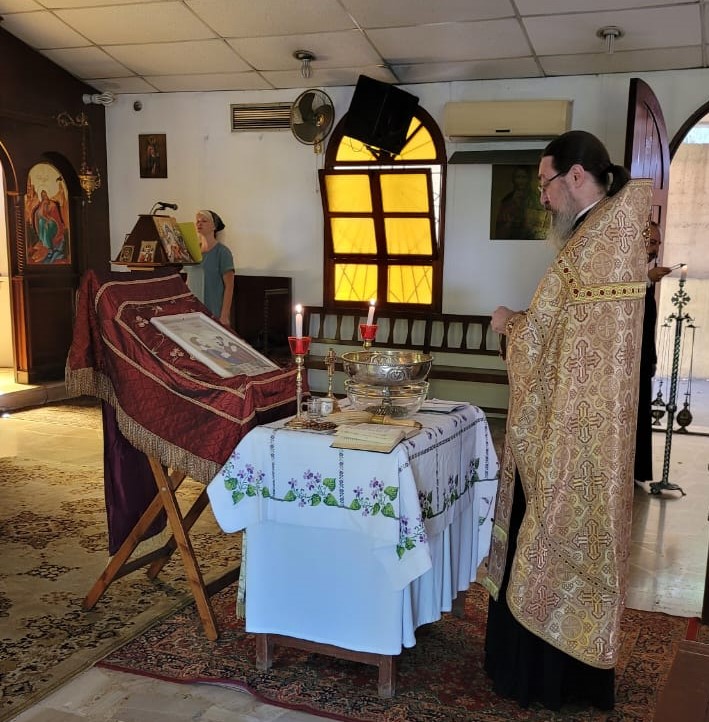 В четверг, 14 июля, седмицы 5-ой по Пятидесятнице, в день памяти бессребреников Космы и Дамиана, в Риме пострадавших, в храме Благовещения Пресвятой Богородицы в Жаль Эль Диб был совершён Водосвятный молебен.