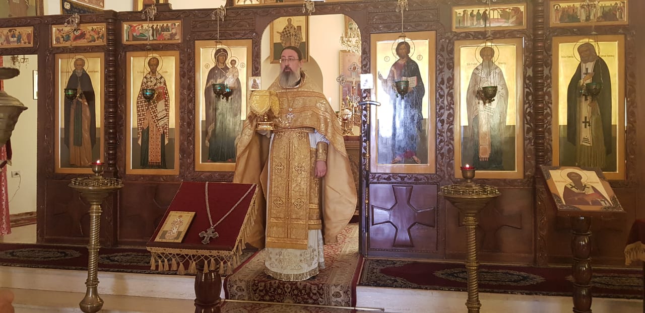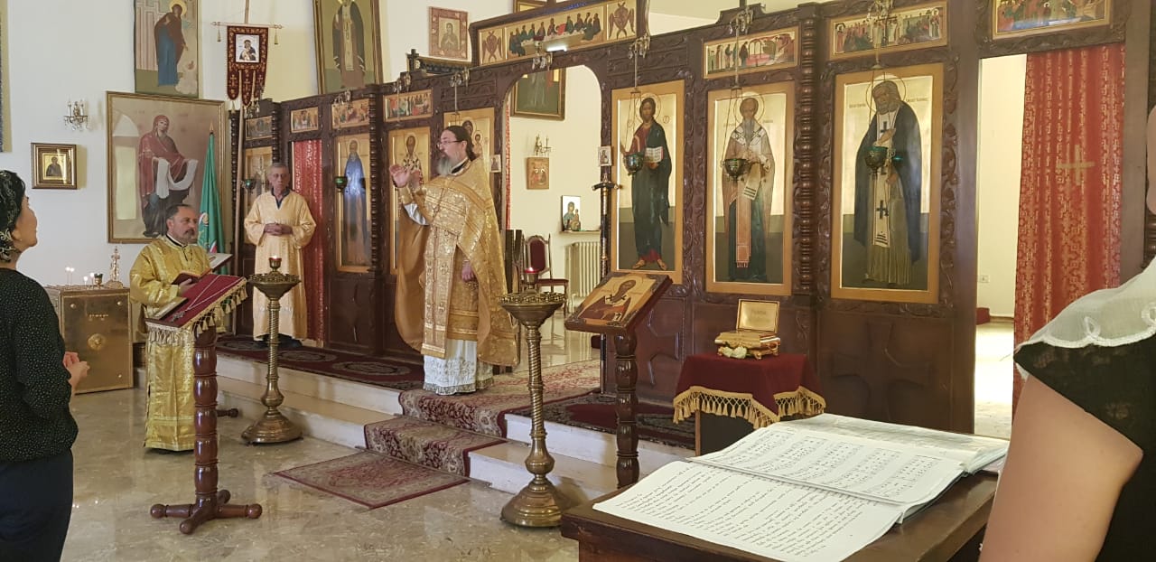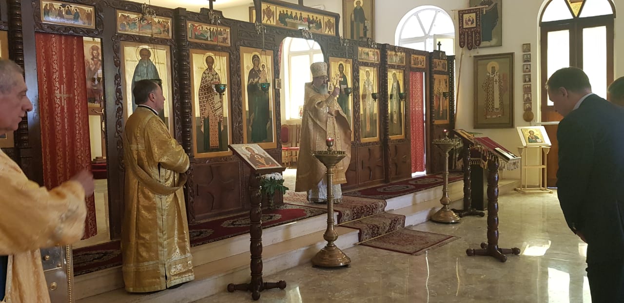 Божественную литургию возглавил представитель Святейшего Патриарха Московского и всея Руси при Патриархе Великой Антиохии и всего Востока архимандрит Филипп в сослужении диакона Максима Сабаха.