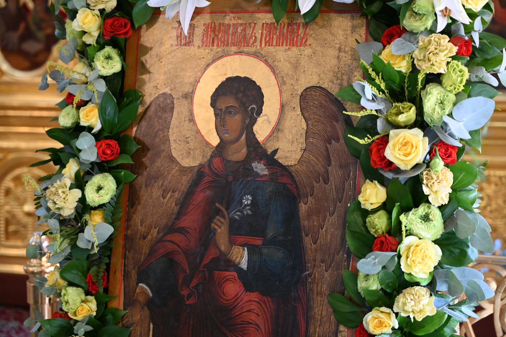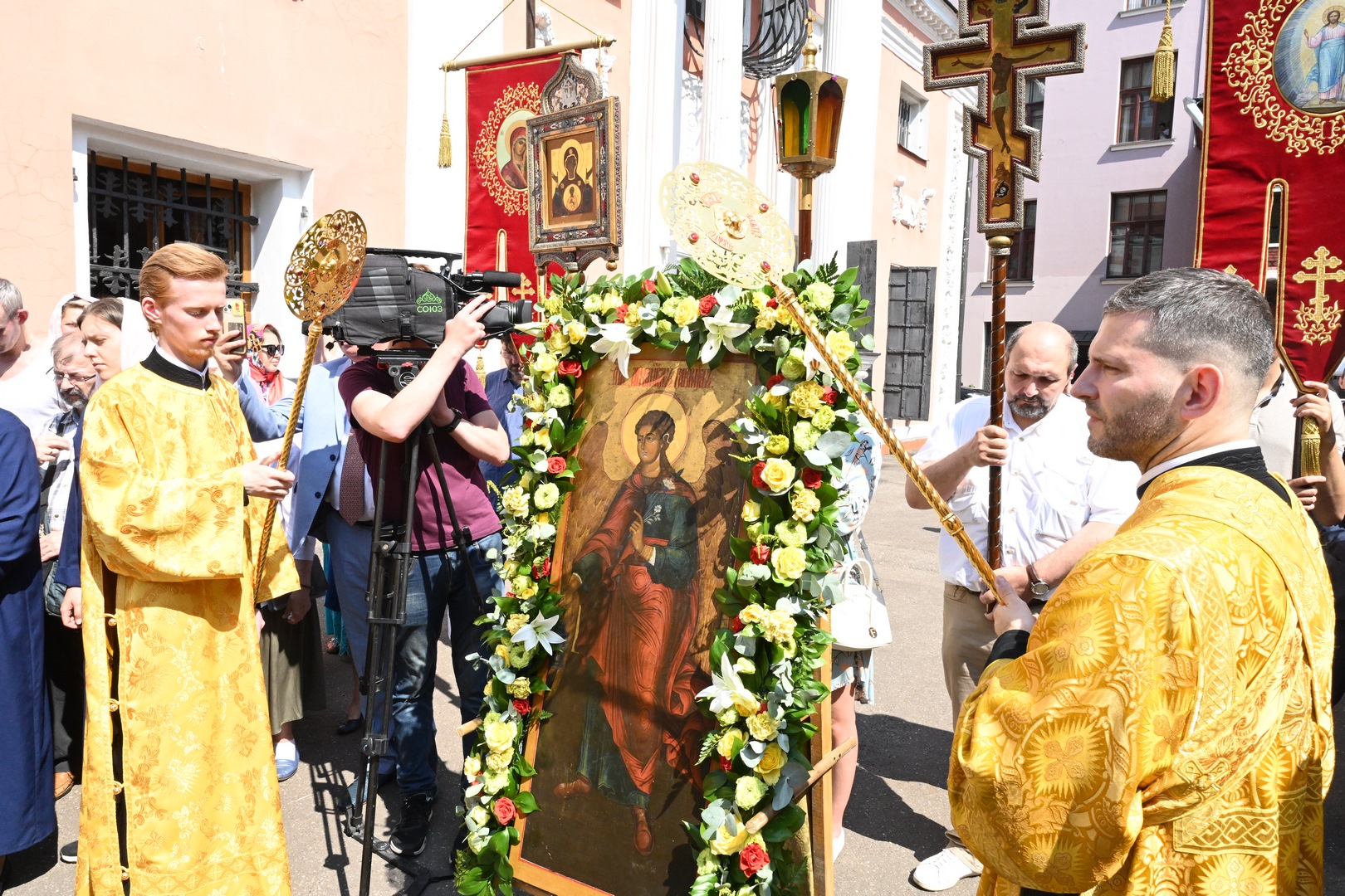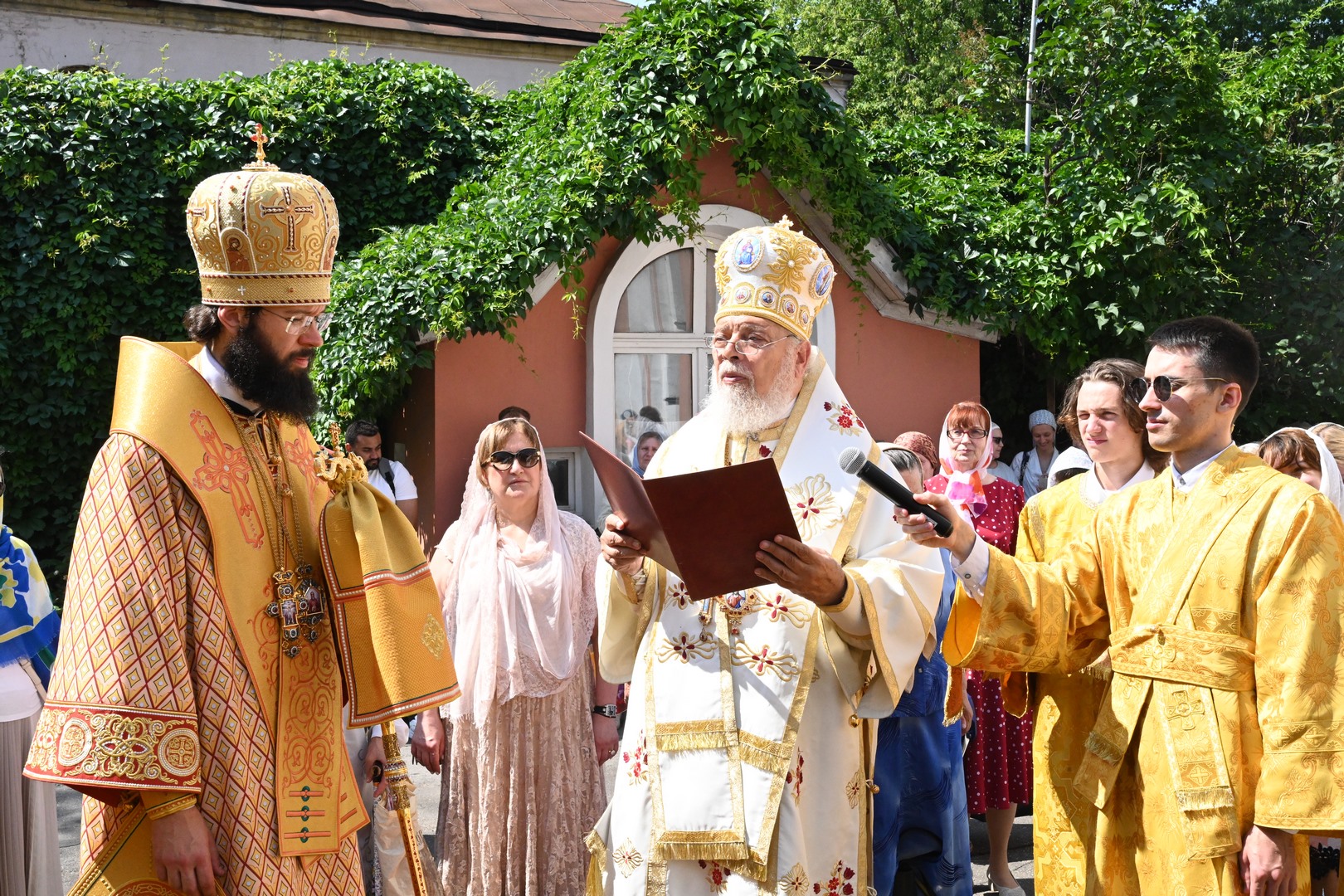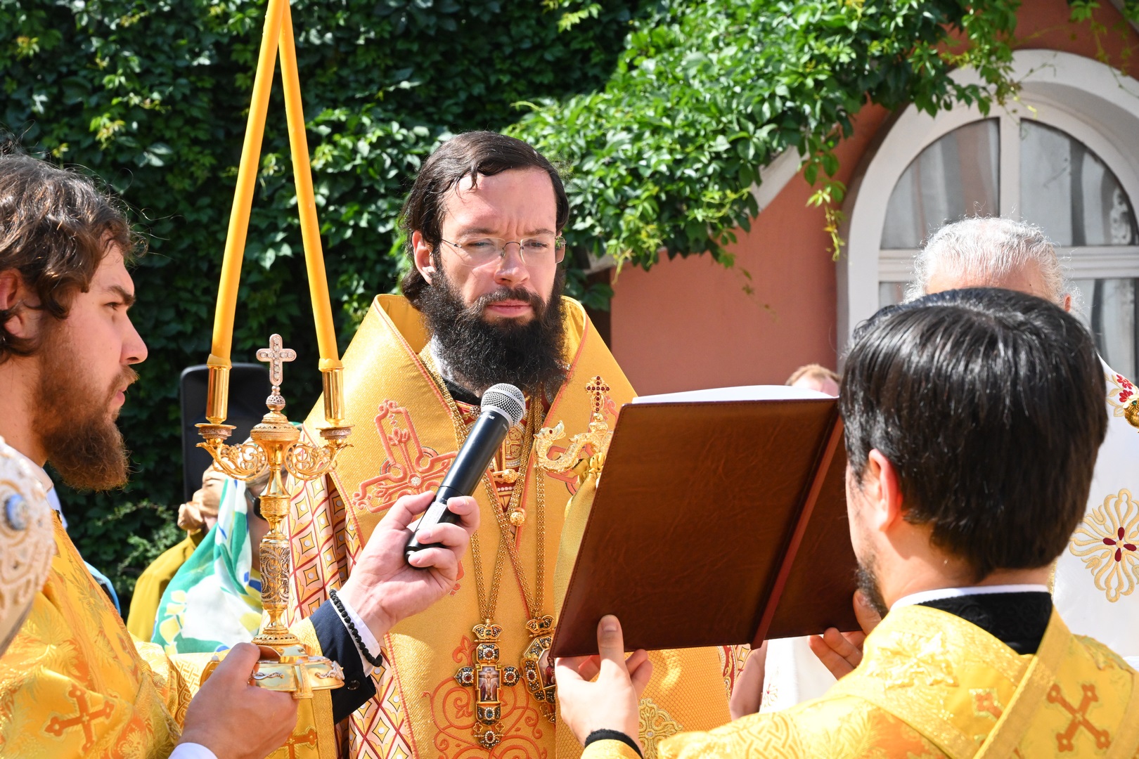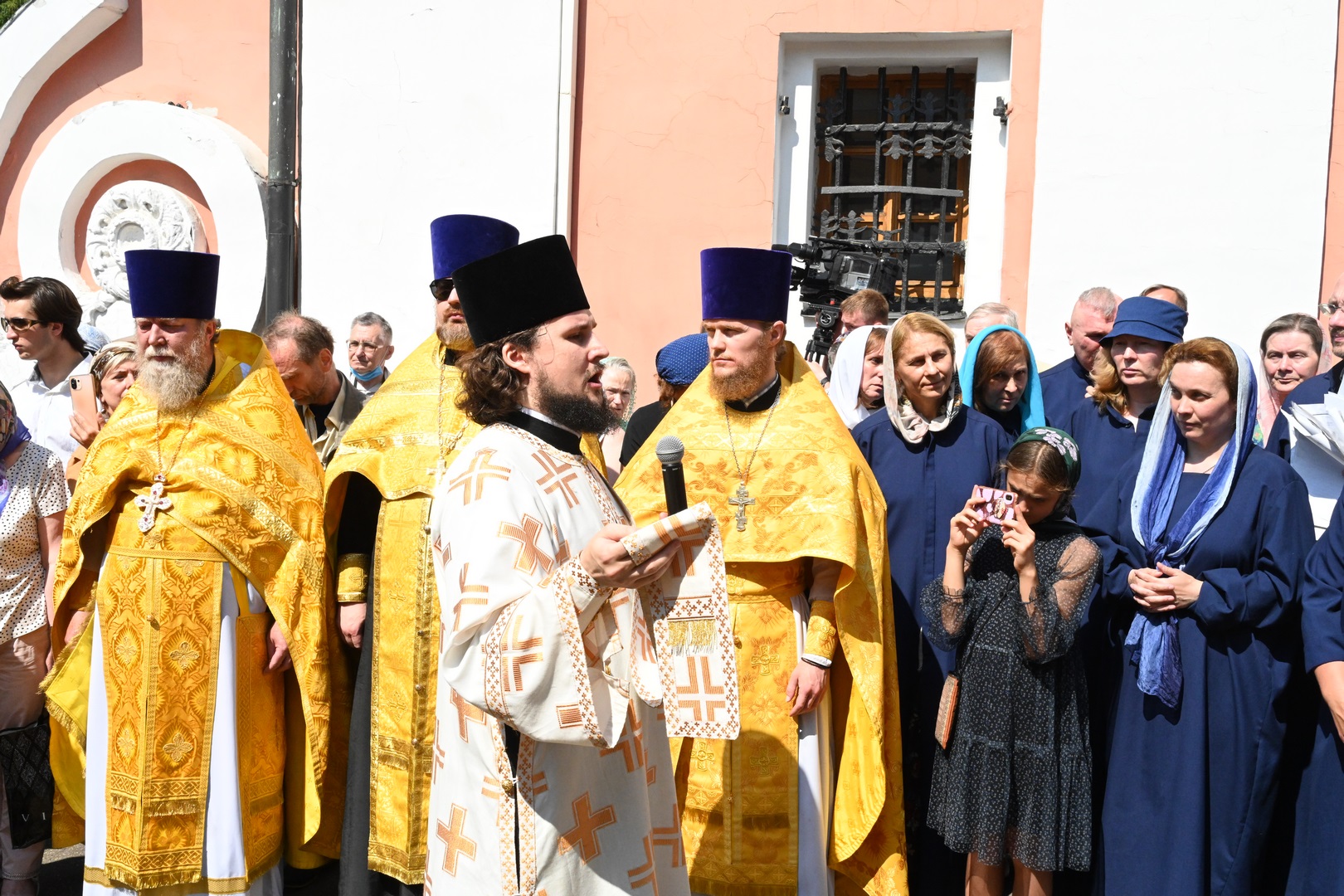 По завершении Литургии молебен святому Архангелу Гавриилу был совершен под открытым небом во дворе храма.