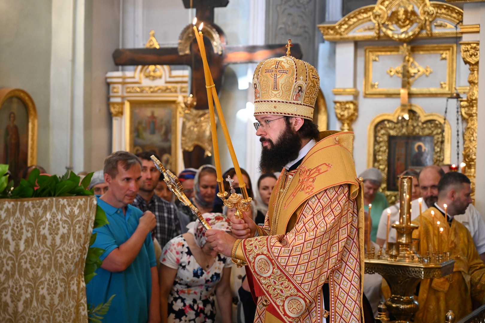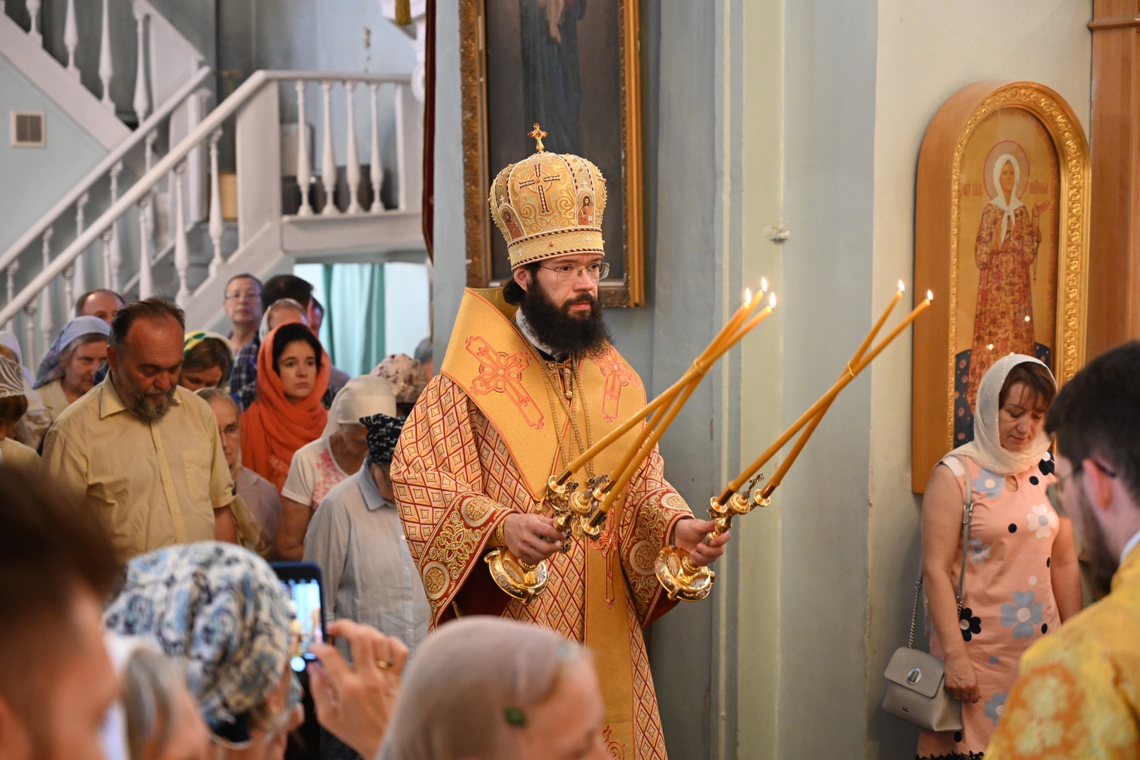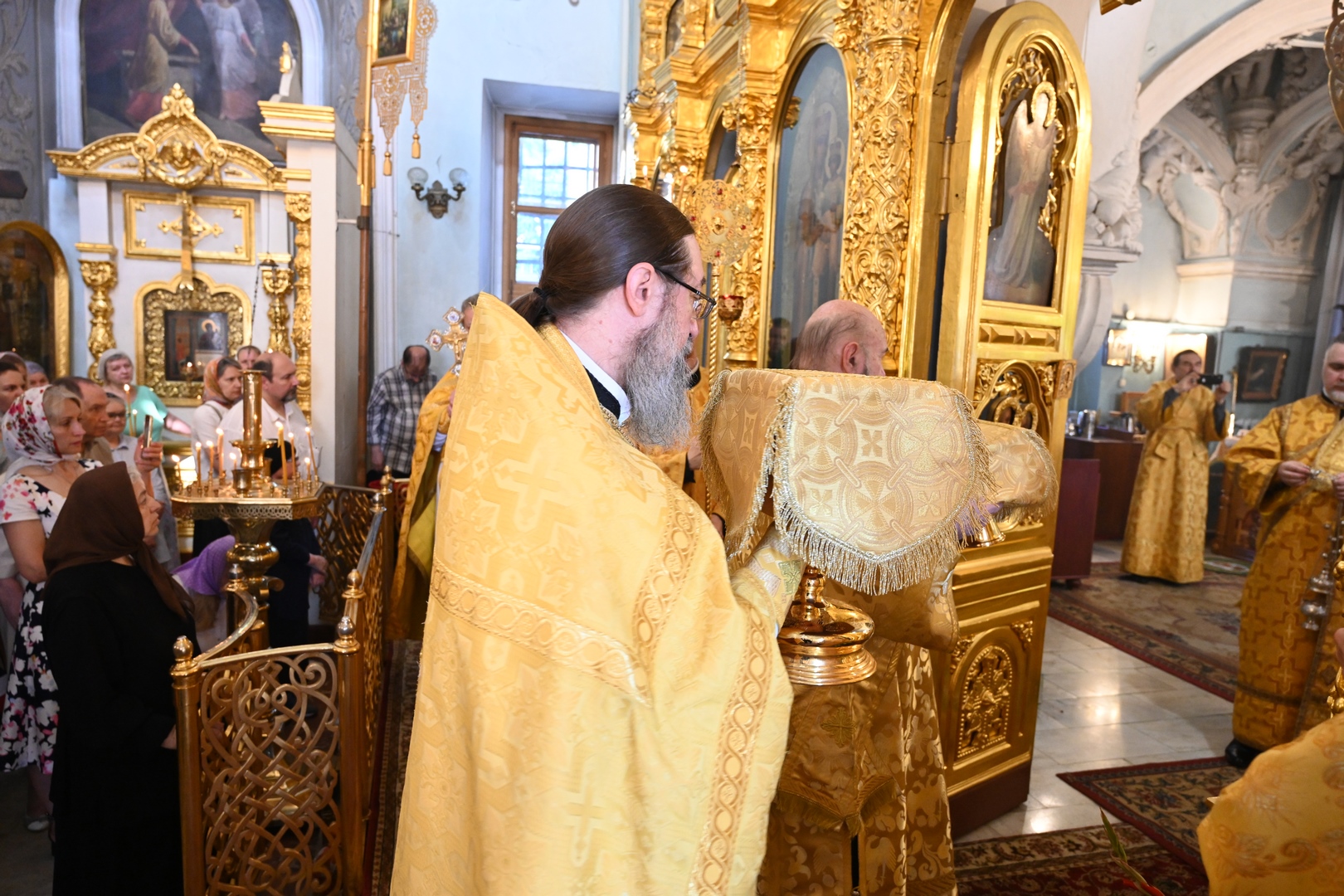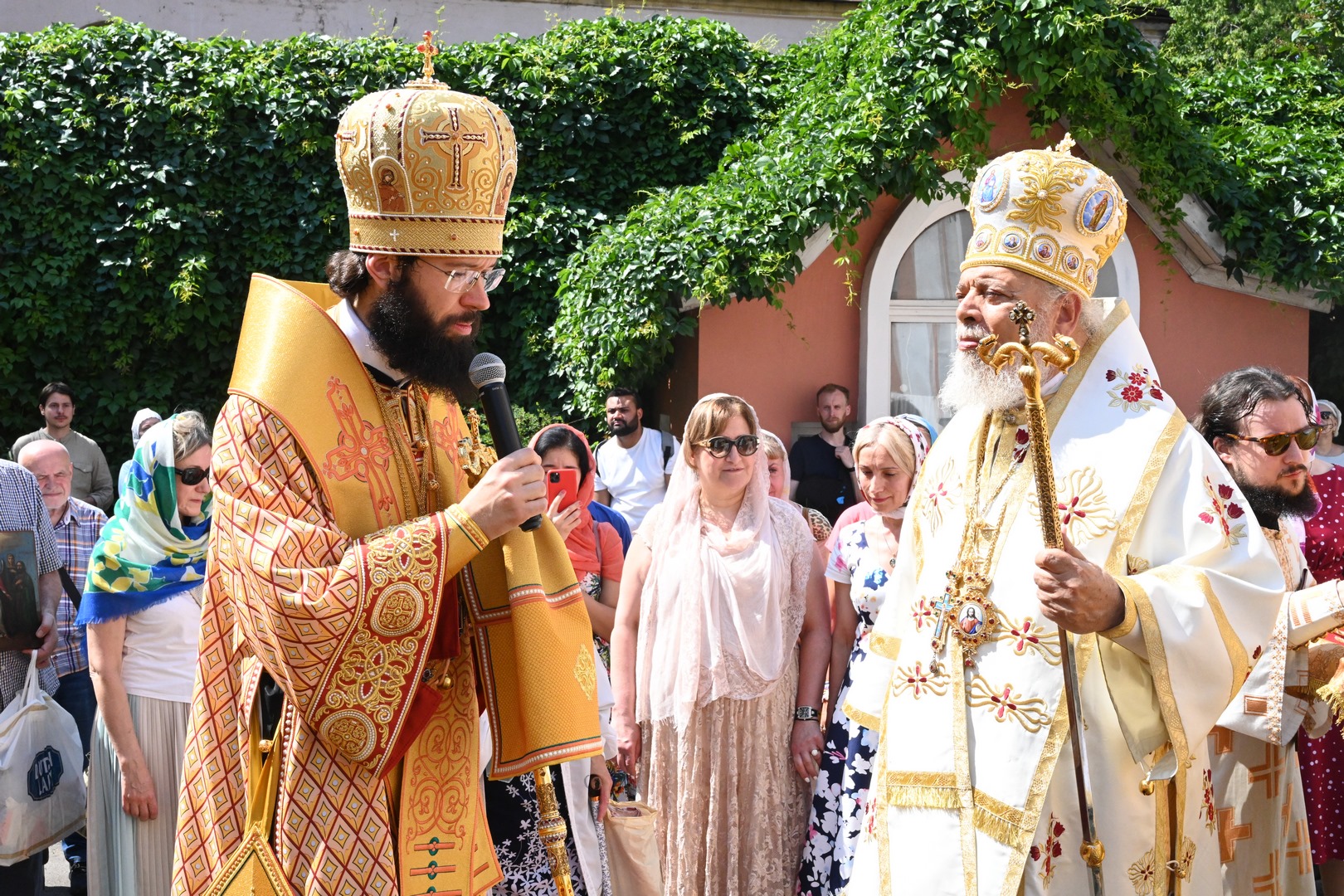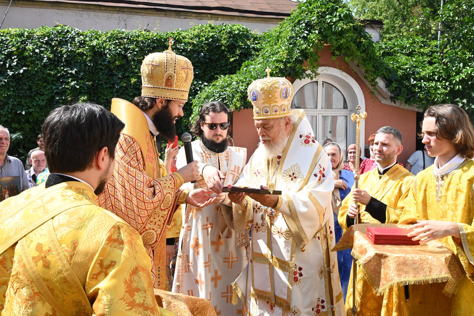 По завершении Литургии молебен святому Архангелу Гавриилу был совершен под открытым небом во дворе храма.