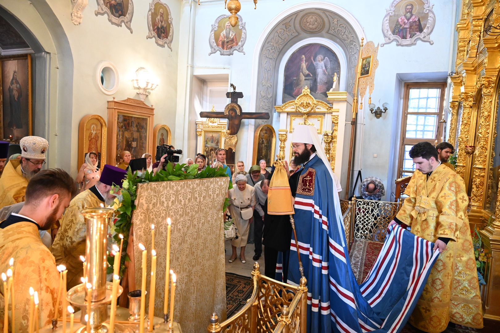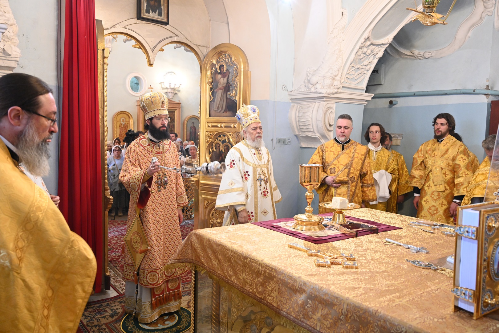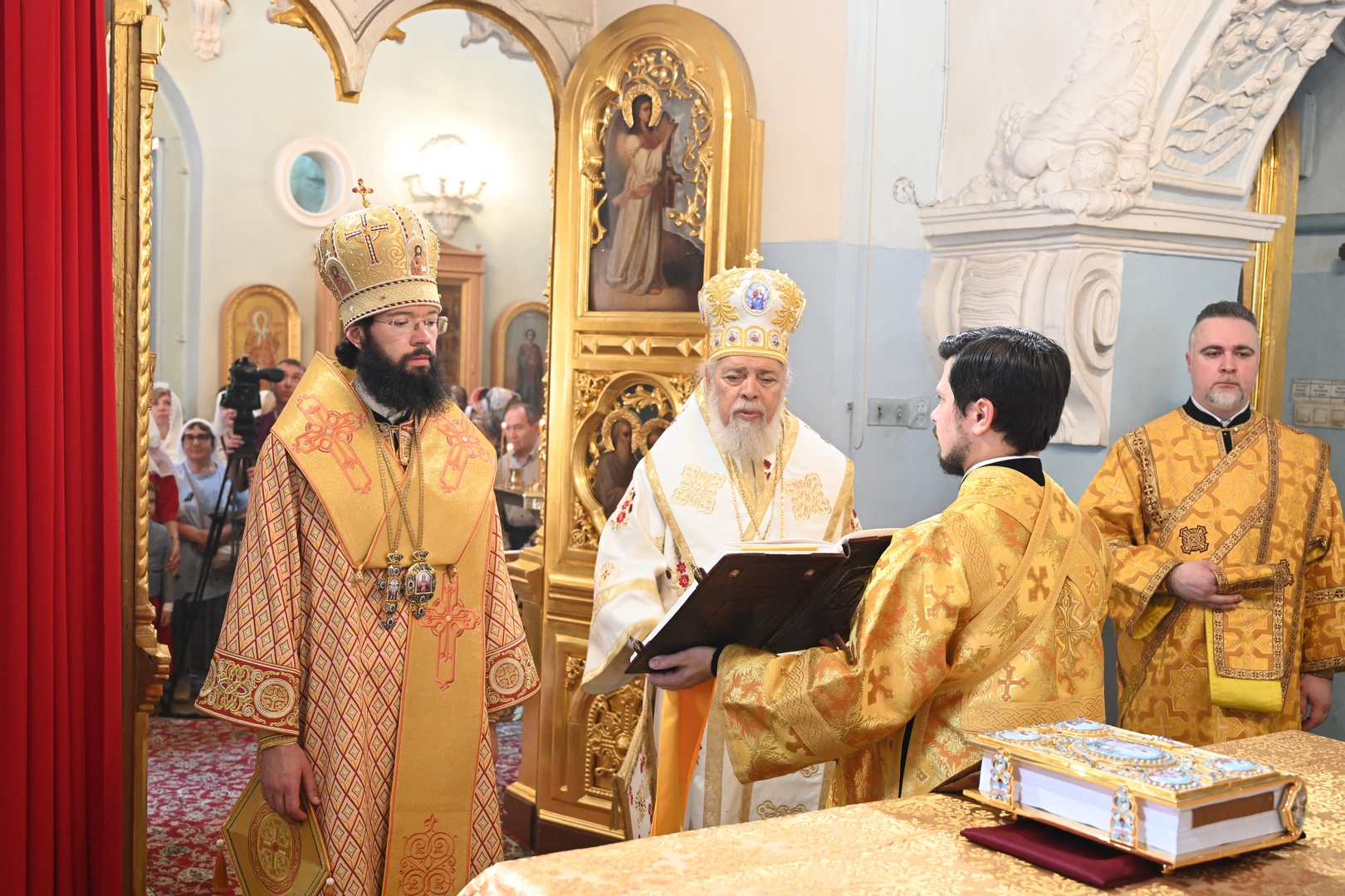 Божественную литургию в храме Архангела Гавриила совершили председатель Отдела внешних церковных связей Московского Патриархата митрополит Волоколамский Антоний, представитель Патриарха Антиохийского и всего Востока при Патриархе Московском и всея Руси, настоятель подворья митрополит Филиппопольский Нифон.