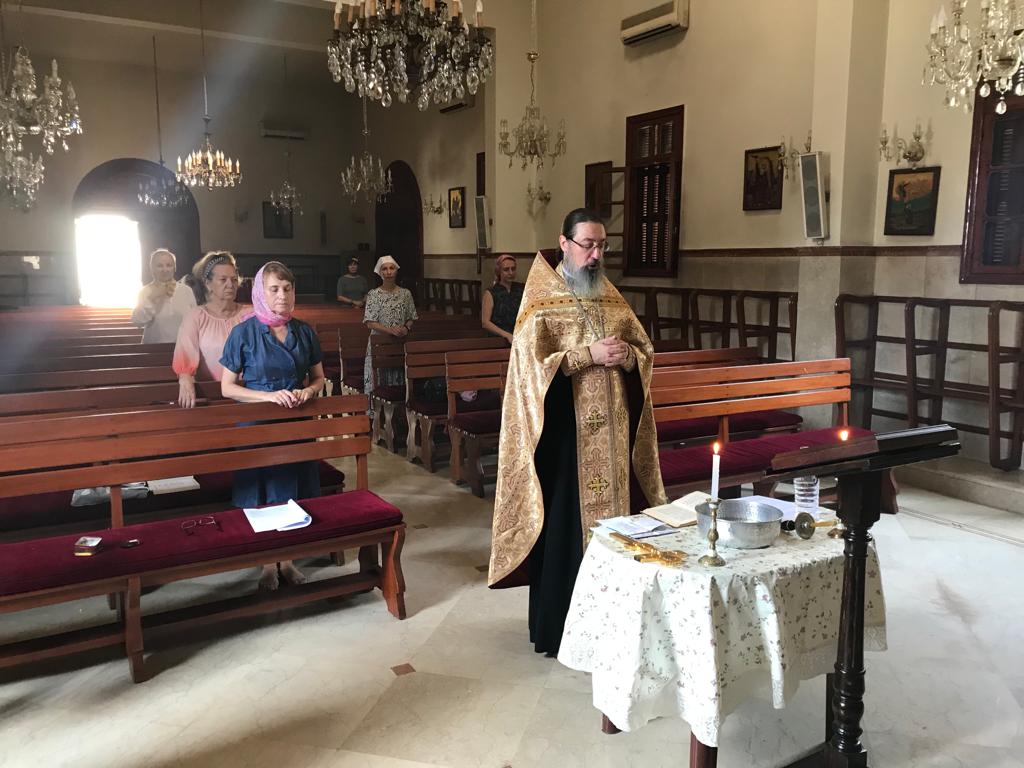 В субботу, 13 августа, седмицы 9-й по Пятидесятнице, в храме св. Иоанна Предтечи в Бейруте был отслужен Водосвятный молебен с акафистом св. вмч. Иоанну Воину нараспев.